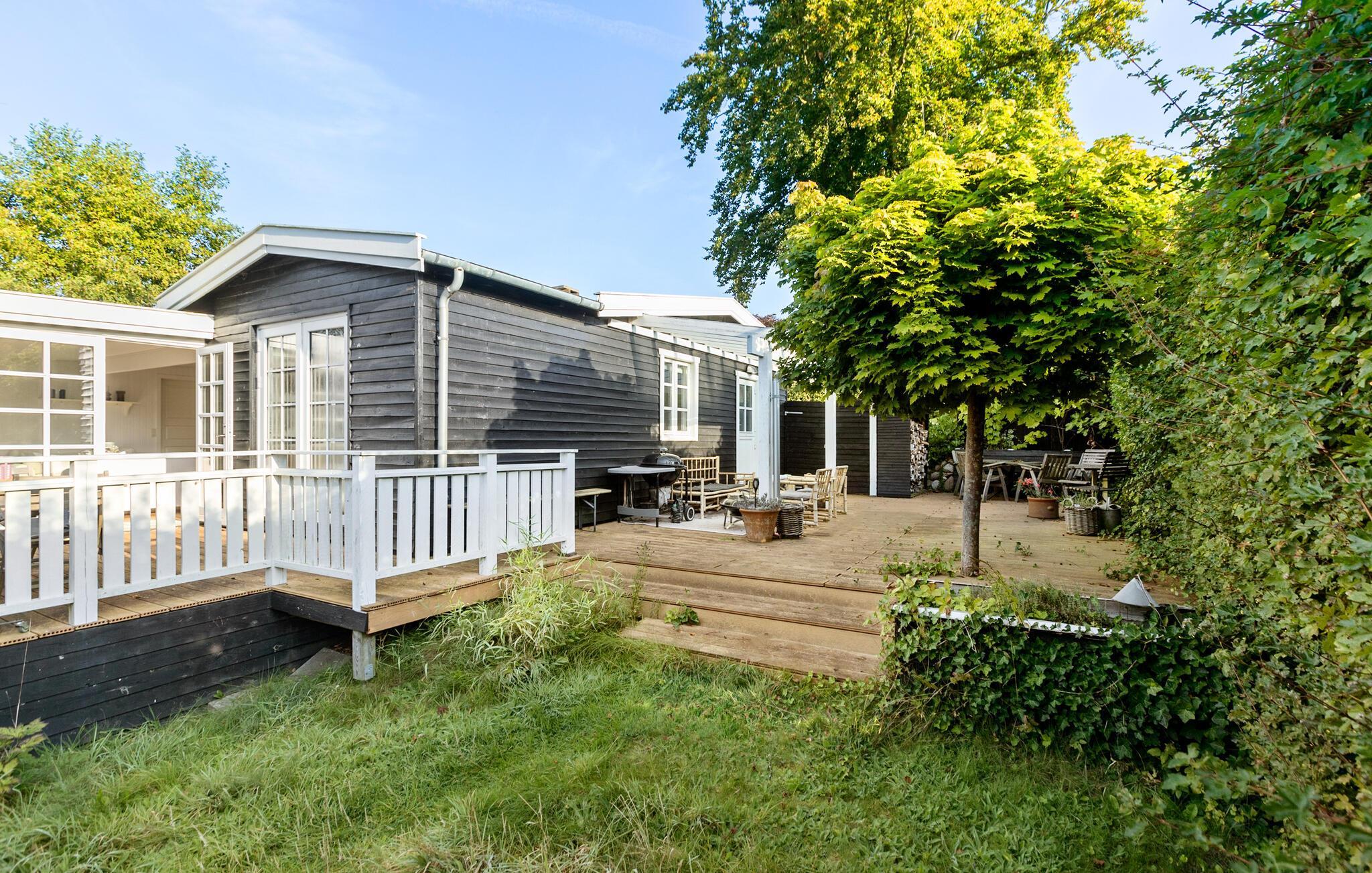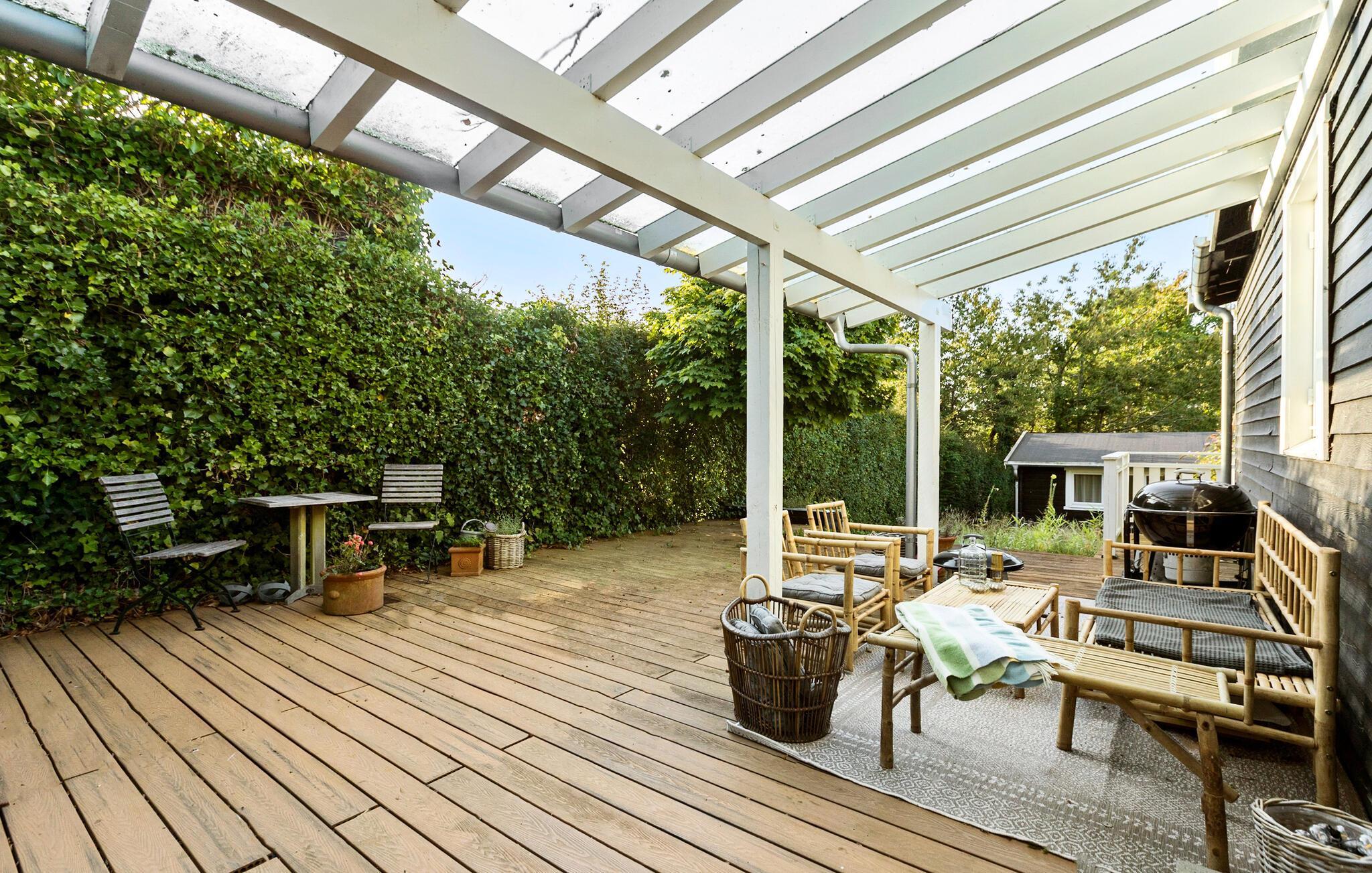 Charmantes Holzferienhaus nahe Sandstränden der Dänischen Riviera mit Terrasse und Kaminofen.