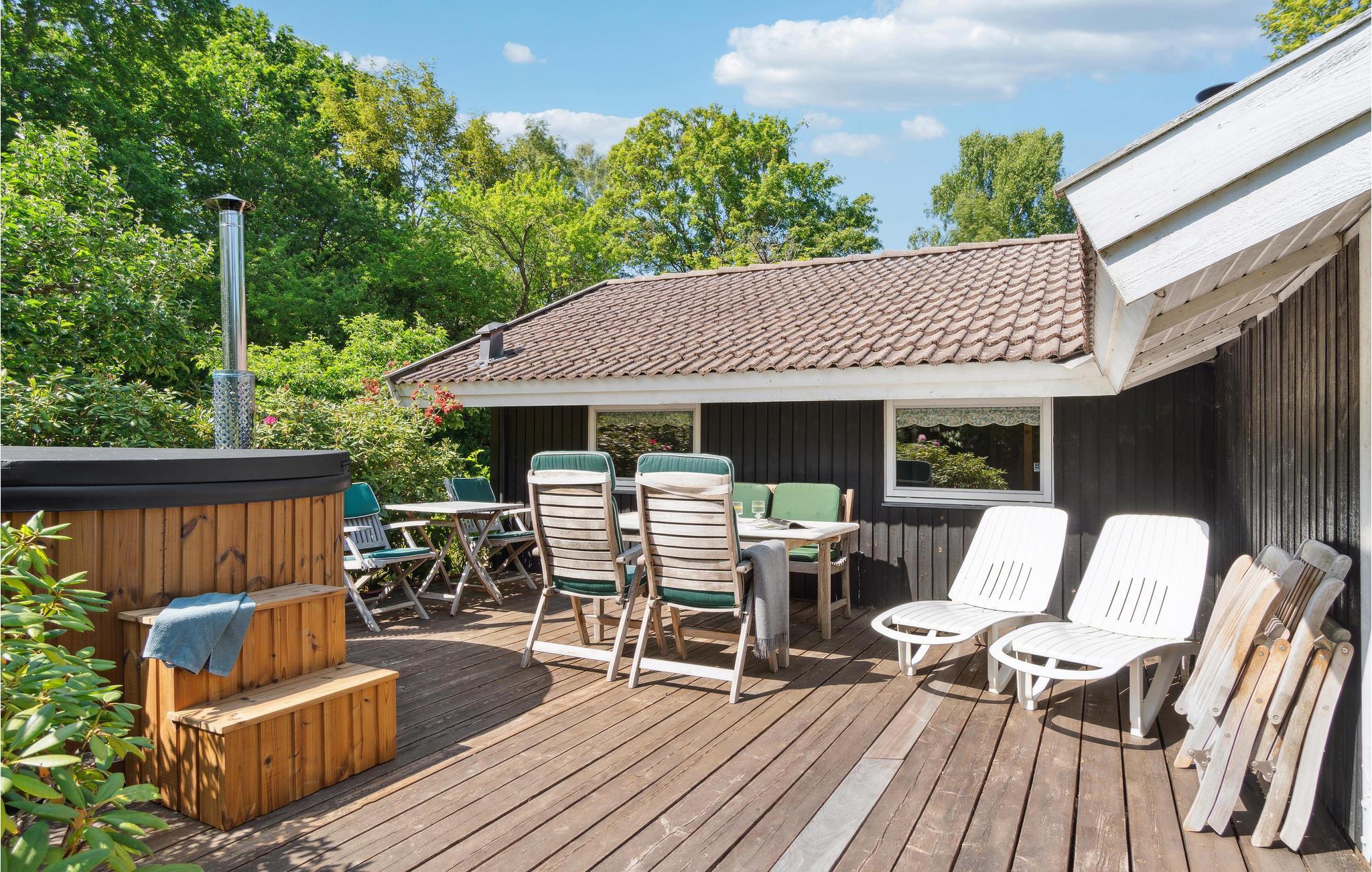 Gemütliches Ferienhaus in Hornbæk Strand mit finnischem Holzbad und privatem Garten für entspannte Urlaubstage.