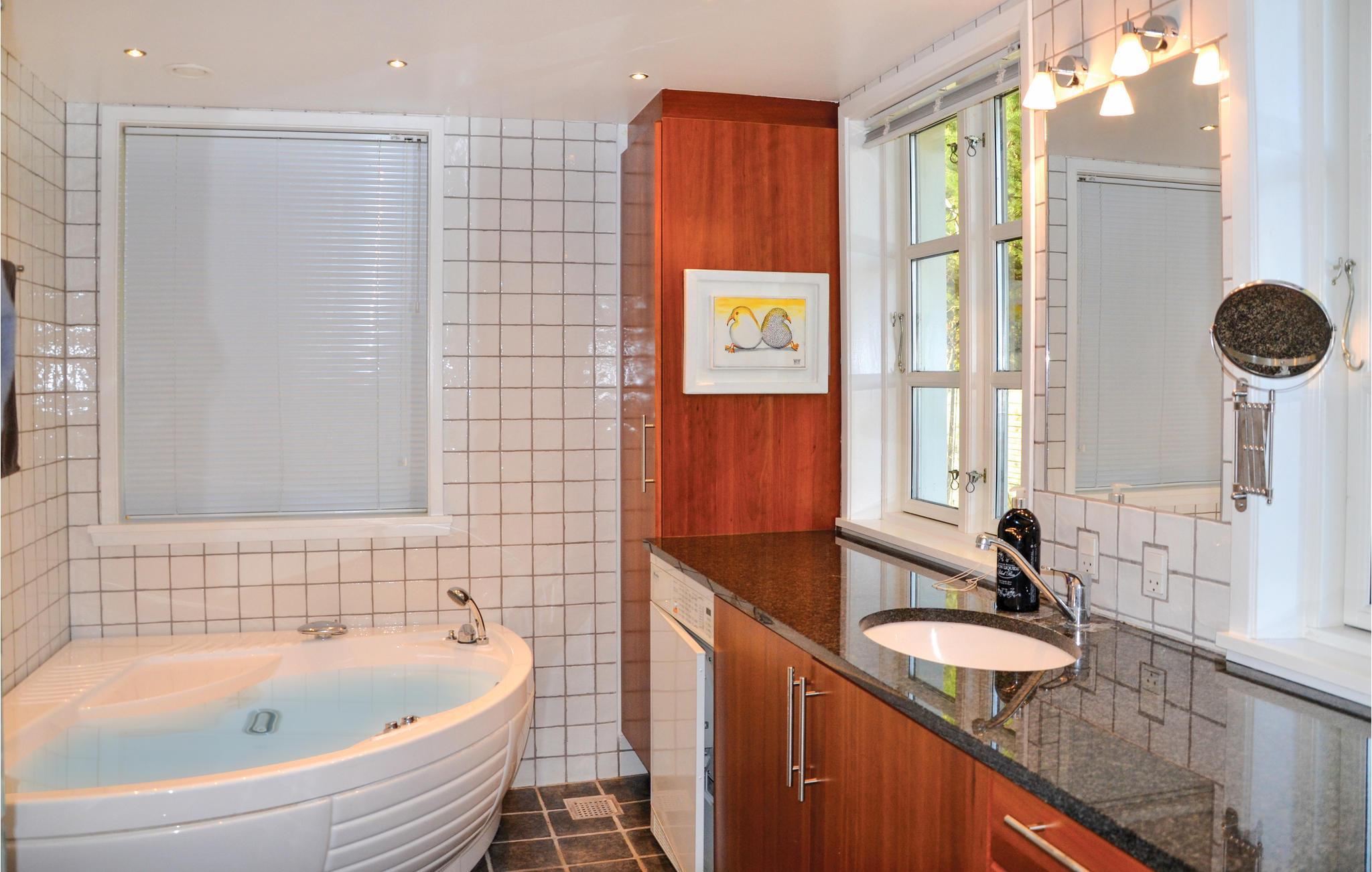In der Nähe von der attraktiven Kleinstadt Hornbæk liegt dieses schöne und geschmackvoll eingerichtete Ferienhaus, ein Haus für die ganze Familie. Das Grundstück liegt sichtgeschützt und besitzt sonnige Terrassen. Alles ist hell und einladend, die großen Fenster geben einen schönen Blick auf den Garten frei. Die Küche ist zum Wohnzimmer offen, drei Schlafzimmer haben Doppelbetten, im vierten steht ein Stockbett. Nach einem aktiven Ferientag können Sie im großen Bad mit Whirlpool entspannen. In Hornbæk gibt es einen schönen Strand, kleine Geschäfte und mehrere Cafés und Restaurans. Am Wasser entlang können Sie gut joggen und Rad fahren. Im Hafen können Sie frischen Fisch kaufen.
