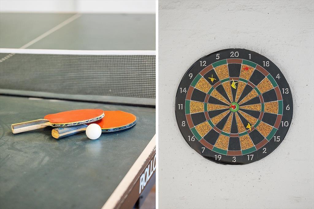 Das ganze Haus wird mit Fußbodenheizung erwärmt; im 1. Stock befinden sich Eschenholzböden, und die Böden im Erdgeschoss sind gefliest. Heizform: Erdwärme. Um das Haus herum lädt das 10.000 m2 große Naturgrundstück mit der großen Grasfläche zu Ballspielen ein; außerdem gibt es mehrere abgeschirmte Terrassen und eine Feuerstelle. Neben dem Haus gibt es einen Aktivitätsraum mit Tischtennis, Tischfußball.