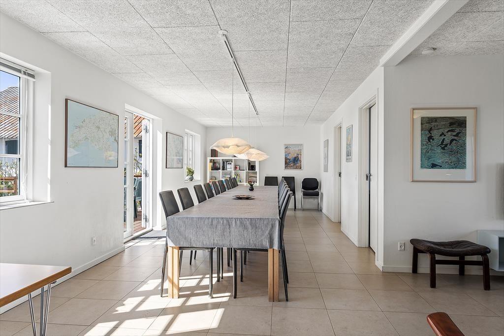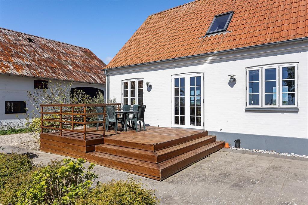Außergewöhnliches, 265m2 großes Ferienhaus in idyllischer Lage am Rande der Ferienhaussiedlung Horne Sommerland mit Blick über das Meer und die Felder. Die Renovierung dieses Ferienhauses ist 2014 abgeschlossen. Das Haus ist zweistöckig, wobei 4 der Schlafräume und 2 Schlafplätze in einer Duchgangsraum im 1. Stock befinden und 2 Sclafräume im Erdgeschoss. Das Haus verfügt zudem über eine moderne und gut eingerichtete Küche in direktem Anschluss an das Wohnzimmer mit Essplatz und Sofaecke. Darüber hinaus gibt es im Haus einen Hauswirtschaftsraum mit Waschmaschine und Trockner. Zwei Badezimmer im Erdgeschoss und ein Gäste-WC im 1. Stock.
