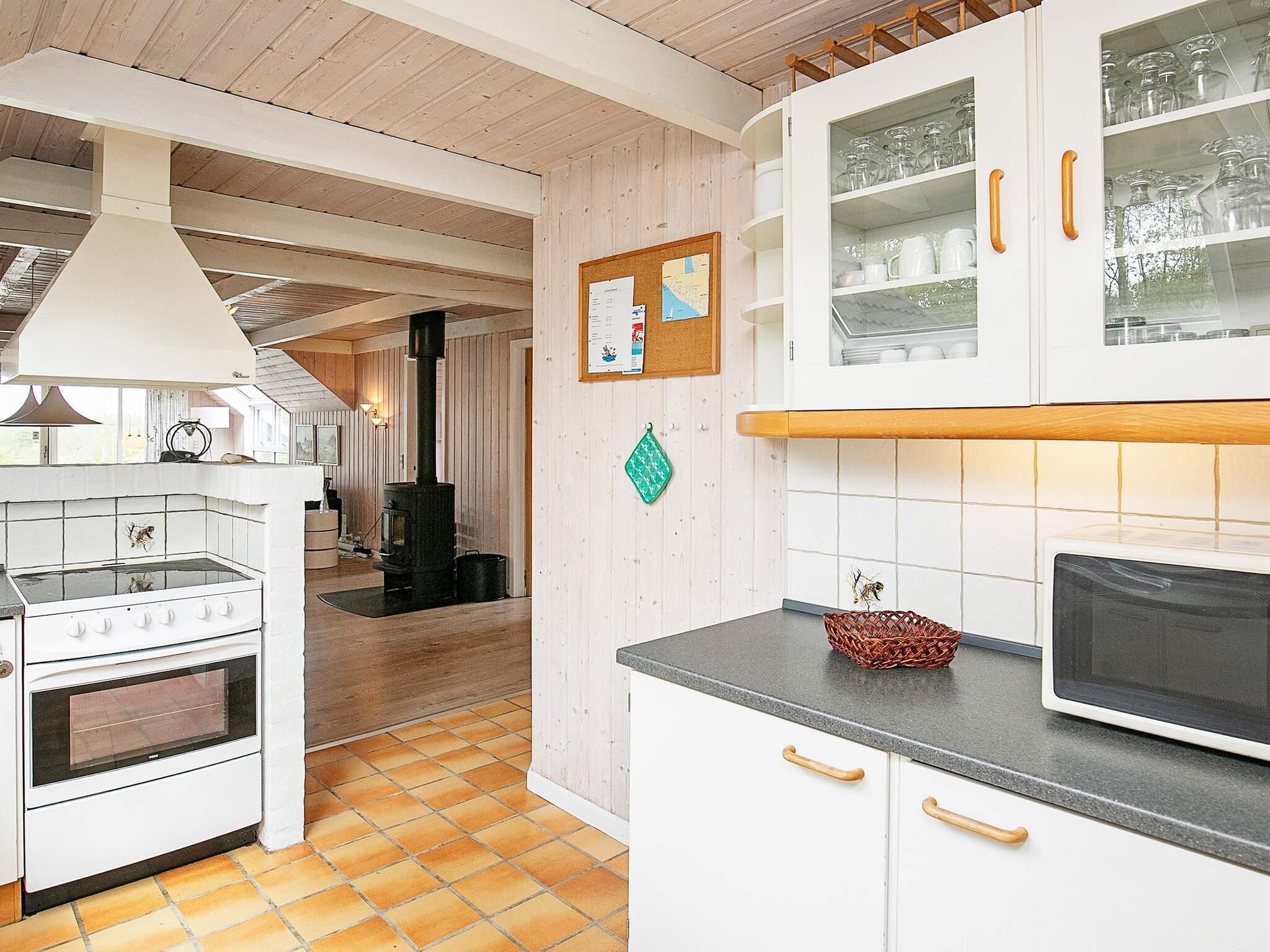 Das Ferienhaus bietet mit drei komfortablen Schlafzimmern viel Platz für die ganze Familie. Zwei Zimmer sind mit Doppelbetten ausgestattet, das dritte verfügt über ein Doppelbett und ein angrenzendes Etagenbett, ideal für ein Kind. Für Familien mit Kleinkindern stehen außerdem ein Kinderbett und ein Hochstuhl zur Verfügung. Das großzügige, 42 Quadratmeter große Wohnzimmer bildet das Herzstück des Hauses und bietet einen Essbereich, eine gemütliche Sitzecke und einen Kaminofen, der für Wärme und Gemütlichkeit sorgt. Für Unterhaltung sorgen ein Fernseher mit dänischen und deutschen Sendern, ein DVD-Player sowie eine Stereoanlage.