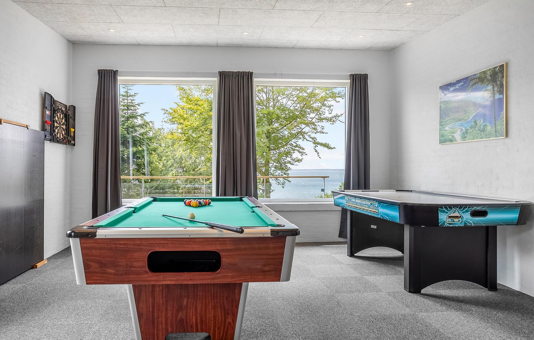 Nur wenige Schritte vom Ufer des Fjords entfernt verwöhnt Sie dieses sensationelle Urlaubsdomizil mit zahlreichen Extras, über die Sie sich freuen werden. Treten Sie ein und lassen Sie sich vom eleganten und hellen Interieur begeistern, in dem große Fensterfronten einen tollen Blick aufs Meer eröffnen. Genießen Sie entspannte Mahlzeiten am einladenden Esstisch, vergnügen Sie sich im Aktivitätsraum beim Billardspielen, an der Tischtennisplatte oder an der Dartscheibe, oder lassen Sie einen langen Tag mit einem gemütlichen Filmabend ausklingen.