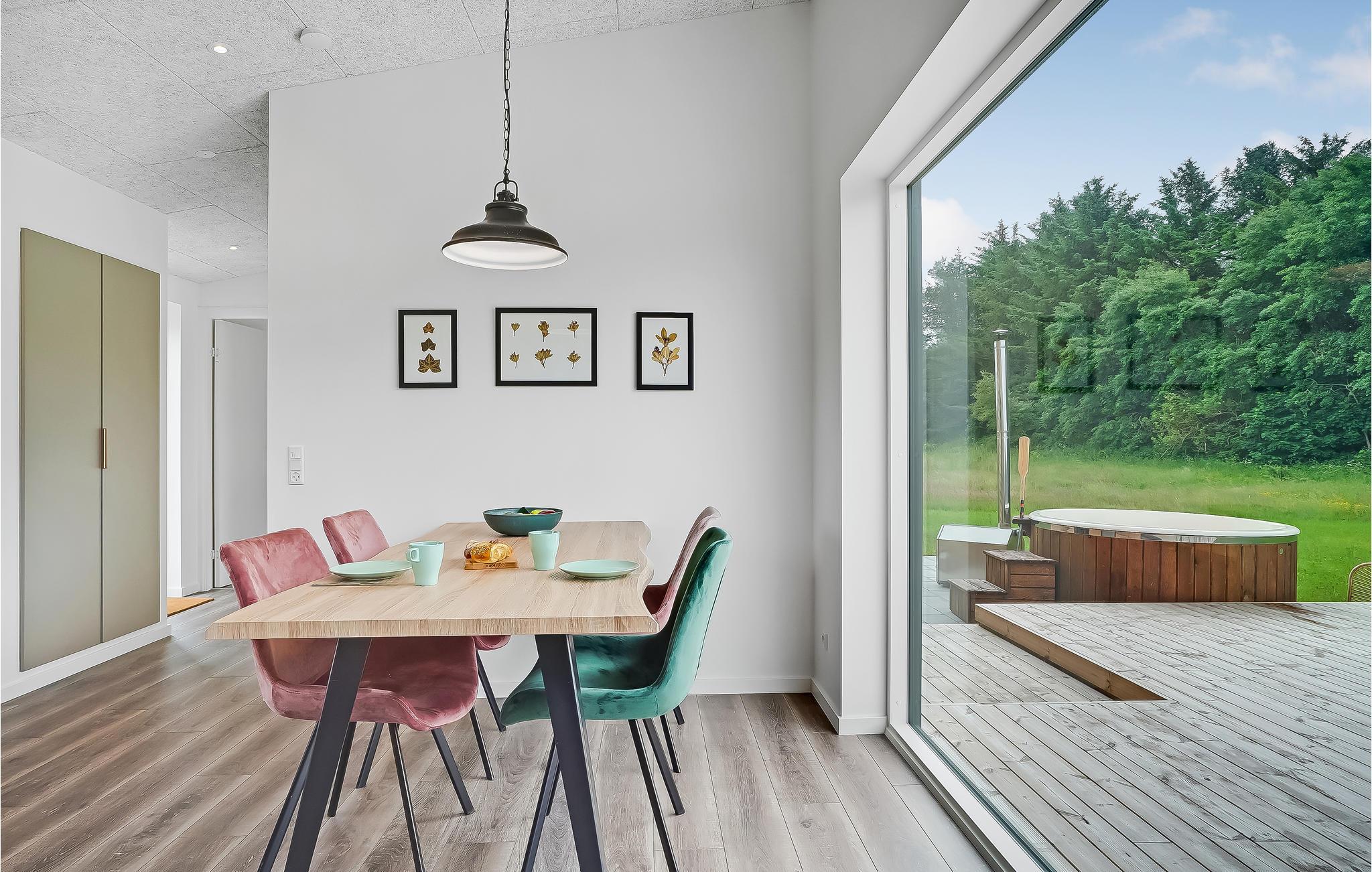 Das große Panoramafenster am Esstisch, durch dass Sie auf die Terrasse gelangen und einen fantastischen Blick auf die Landschaft genießen, gehört zweifellos zu den Highlights dieses Ferienhauses. Die moderne Ausstattung und stilvolle Einrichtung tun ihr Übriges, um den Urlaub hier zum wahren Genuss zu machen.