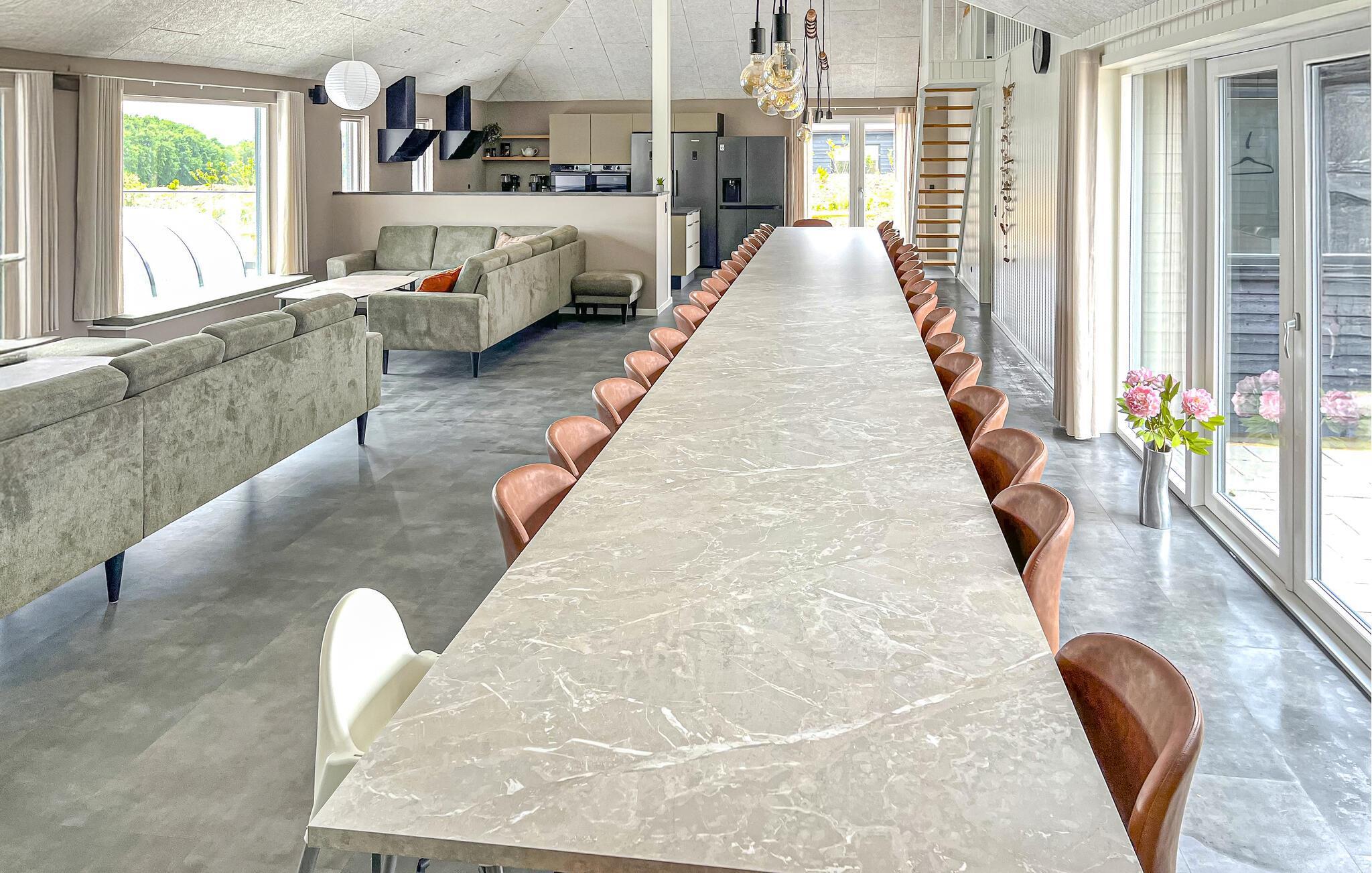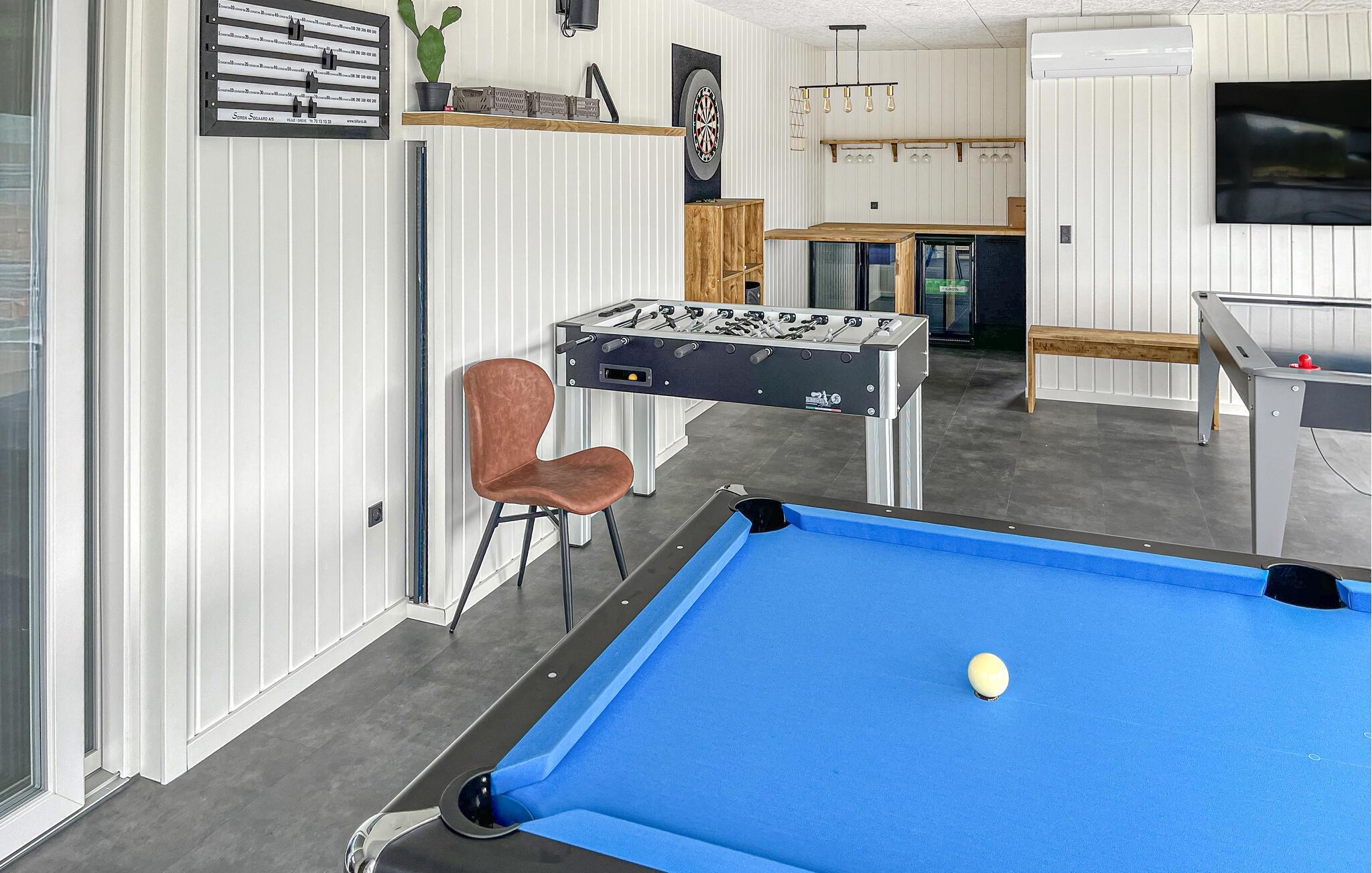 Dieses komfortable Ferienhaus bietet reichlich Platz, um mit einer Gruppe oder der Großfamilie einen entspannten Urlaub am Meer zu genießen. Kochen Sie in geselliger Runde in der geräumigen, voll ausgestatteten Küche und zelebrieren Sie Ihre Mahlzeiten gemeinsam an der langen Esstafel. Spielen Sie Billard, Tischfußball oder Gesellschaftsspiele, oder organisieren Sie einen gemütlichen Filmabend. Vielfältige Sitzmöglichkeiten laden Ruhesuchende ein, sich mit einem guten Buch oder anderen Aktivitäten zurückzuziehen.