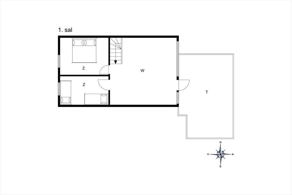 Enkeltseng 80 x 200 Dieser Schlafplatz befindet sich im Wohnzimmer im 1. Stock