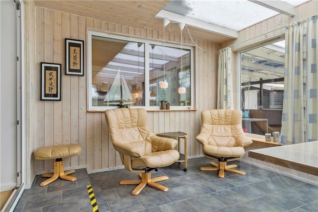 Freu dich auf dieses schöne, geräumige Ferienhaus, das zu unvergesslichen Augenblicken im Familien- und Freundeskreis einlädt. Mit vier gemütlichen Schlafräumen und einem reizenden Nebengebäude im Garten beherbergt es bis zu zehn Personen. Einer der Schlafräume besticht mit einem direkten Ausgang ins Freie - perfekt für Frühaufsteher, die den Tag mit einem erfrischenden Bad in den wogenden Ostseewellen begrüßen wollen. Der schöne Wintergarten verwöhnt mit einem tollen Tageslichteinfall und gemütlicher Atmosphäre. In diesem Teil des Hauses wirst du mit deinen Lieben gern beisammensitzen, essen und kühle Sommerabende stimmungsvoll ausklingen lassen. Der im Wohnraum platzierte Kaminofen sorgt für typisch dänische Ferienhausatmosphäre.