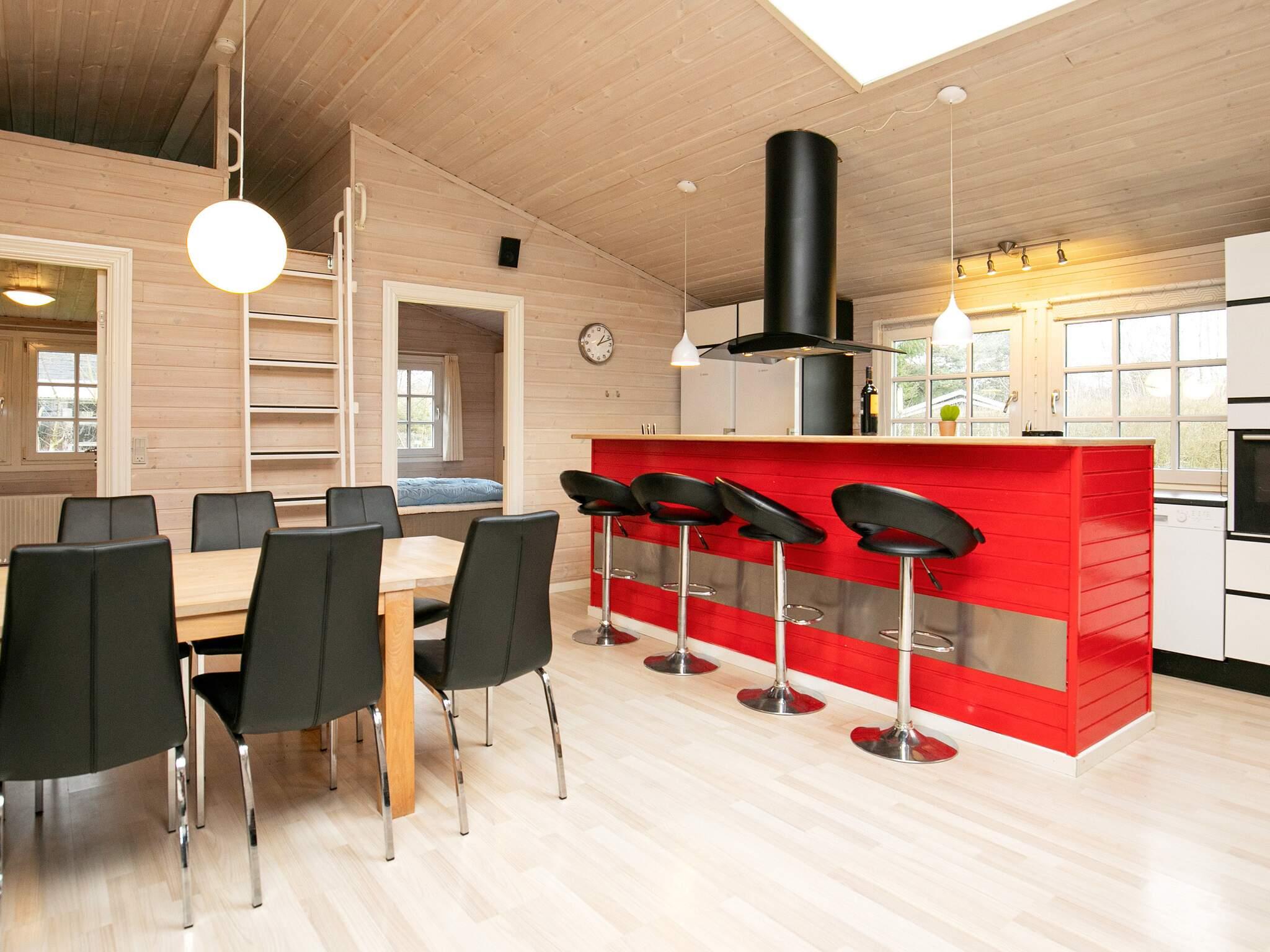 Offener, 60 m2 großer Küchen-/Wohnbereich mitten im Haus für das Familienleben. Mit seinen Oberlichtern ist der Raum besonders hell und einladend. Ringsum das Ferienhaus finden Sie eine 140 m2 große Holzterrasse für Sonnentage und Grillabende. Auf dem Grundstück gibt es viele Möglichkeiten für Aktivitäten wie z.B. Boccia sowie Schaukeln und Sandkasten für die Kleinen. Für die stehen im Haus auch zwei Kinderbetten, zwei Hochstühle. Außerdem doppelter Carport auf dem Grundstück.