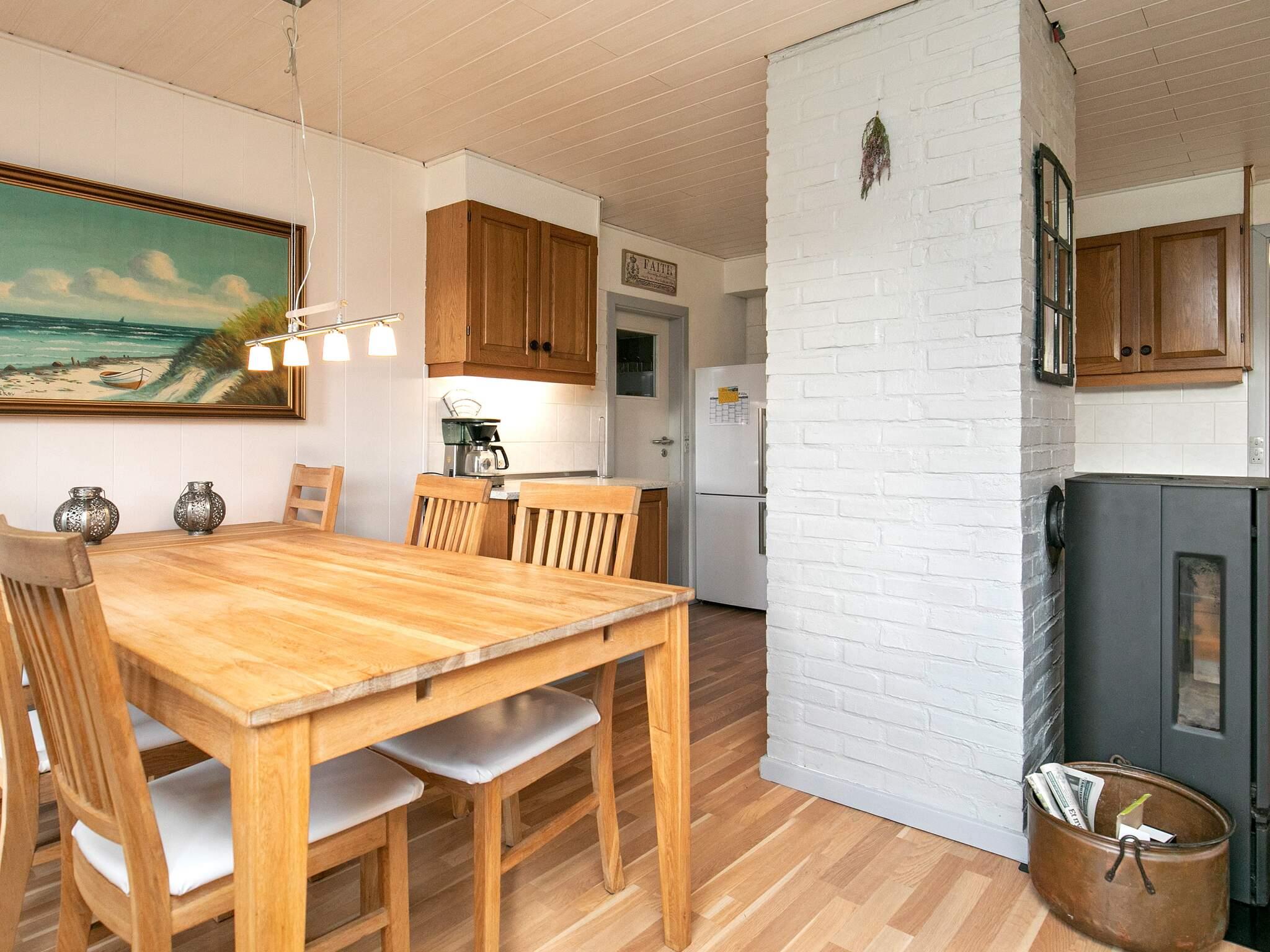Auf einem großen und gepflegten Naturgrundstück bei Hou, liegt dieses 2019 renovierte Ferienhaus. Wohnzimmer mit Ledergarnitur und -sesseln, gemauertem Schornstein in der Mitte des Raumes sowie offen intergrierter Küche. HInter dem Haus können Sie auf der überdachten Terrasse entspannen, vor dem Haus gibt es eine größere, teilweise überdachte Terrasse. Ladestecker für E-Autos im Haus.