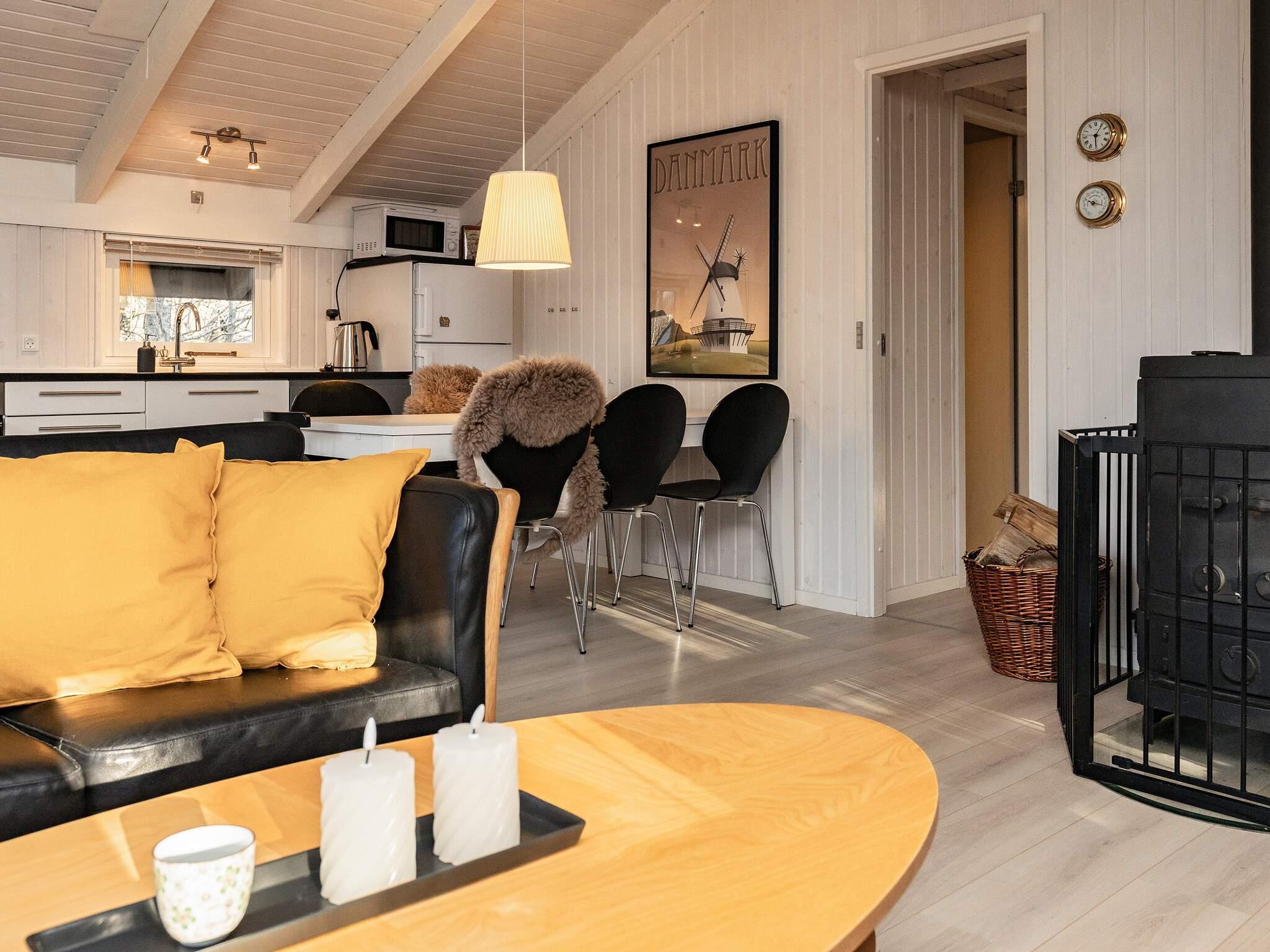 Das Herzstück des Hauses bildet ein helles und einladendes Wohnzimmer, das offen mit der geräumigen und gut ausgestatteten Küche verbunden ist. Dies schafft den idealen Rahmen für gemeinsame Mahlzeiten und gemütliche Zusammenkünfte. Das Wohnzimmer verfügt außerdem über einen Holzofen und eine klimafreundliche Luft-Luft-Wärmepumpe, die auch in der kühleren Jahreszeit für Komfort sorgen. Obwohl kein herkömmlicher Fernsehempfang möglich ist, können Gäste ihre eigenen Sender über Chromecast streamen, was die gemütliche Urlaubsatmosphäre noch verstärkt.