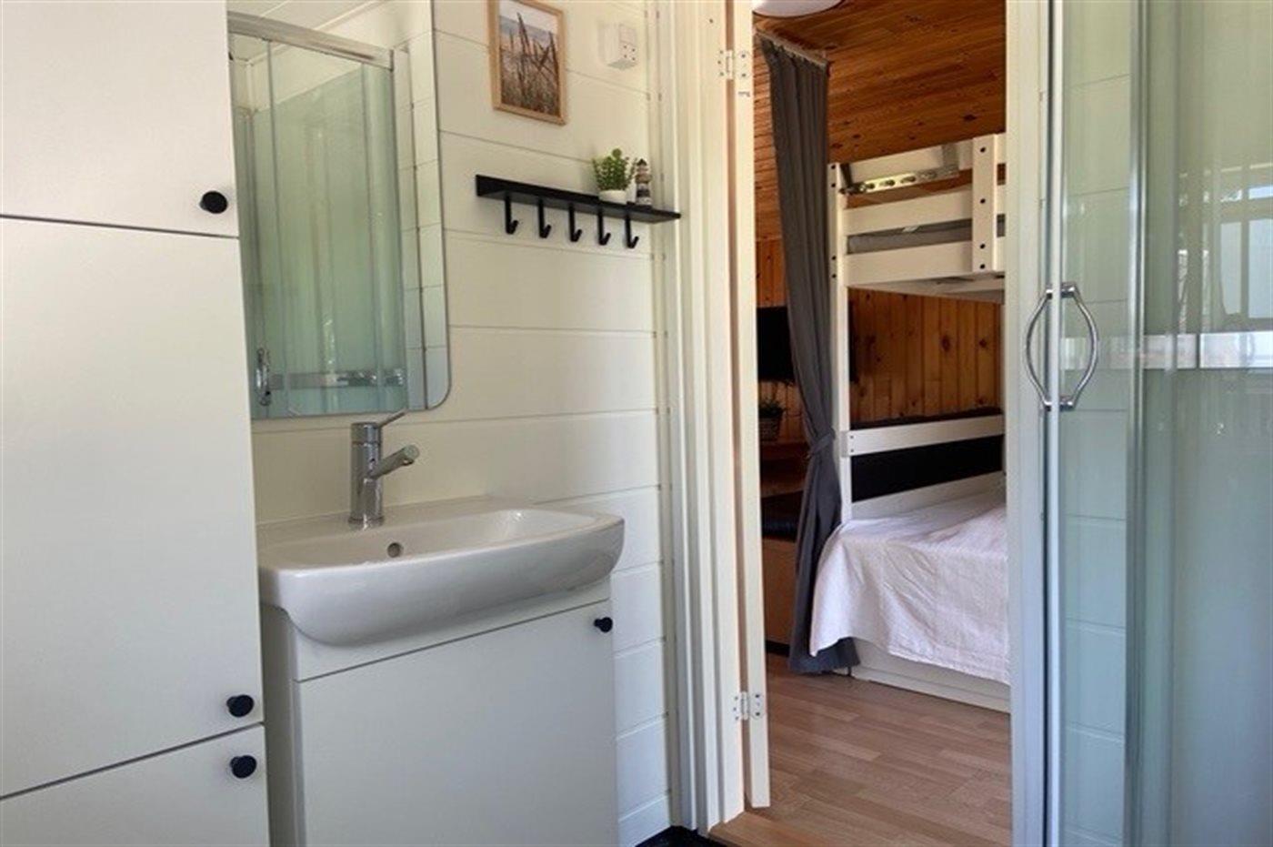 Es gibt zwei gute Schlafplätze in einem Etagenbett mit einer Breite von 160 cm. Zusätzlich gibt es zwei weitere Schlafplätze im oberen Bett, die sich für kleine Kinder eignen. Das Haus wird jedoch hauptsächlich für 2 Personen empfohlen.