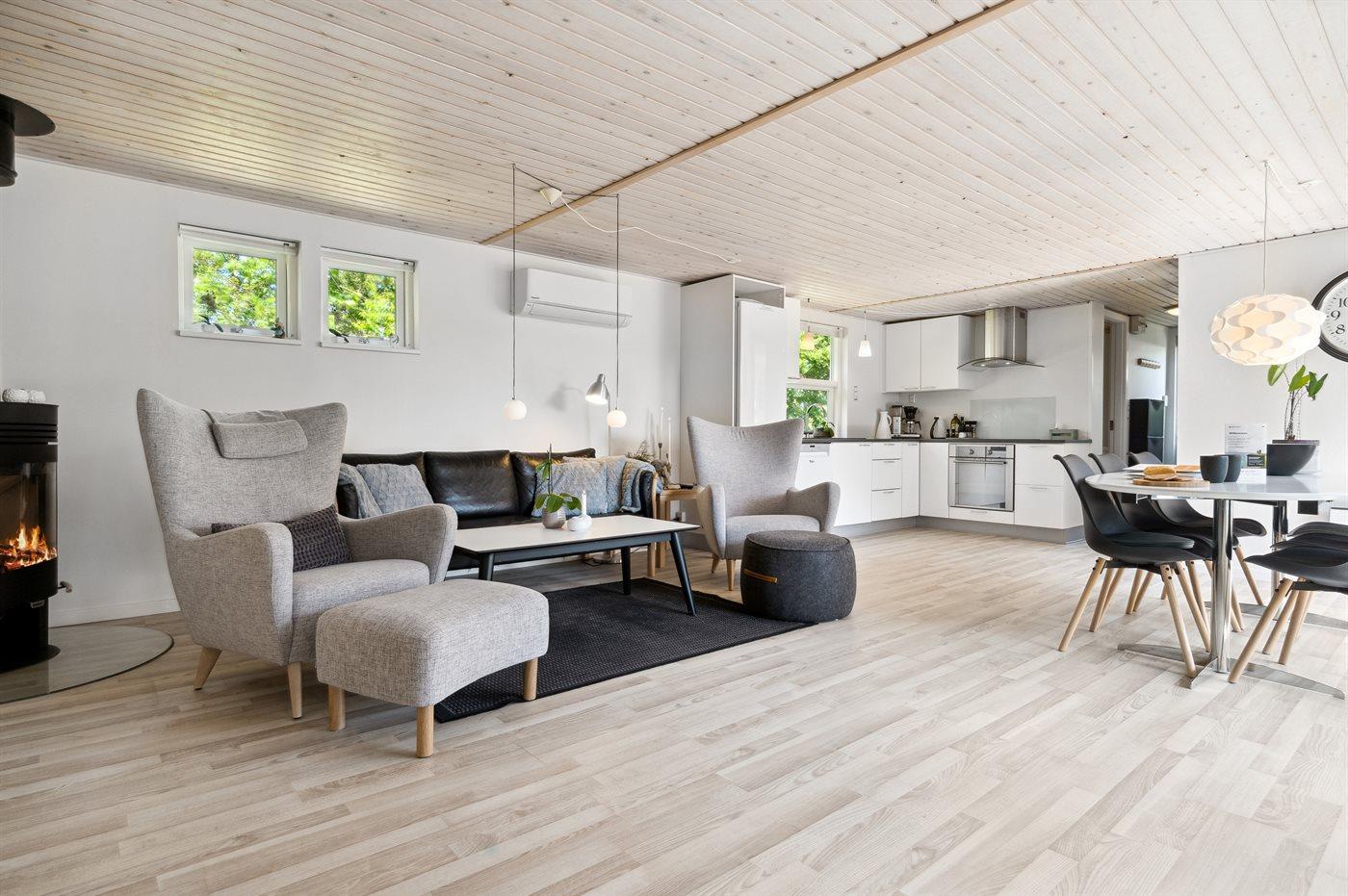 Modernes Ferienhaus in Hals, umgeben von Natur und nahe am Meer, ideal für einen ruhigen Urlaub mit Kamin und Terrasse.