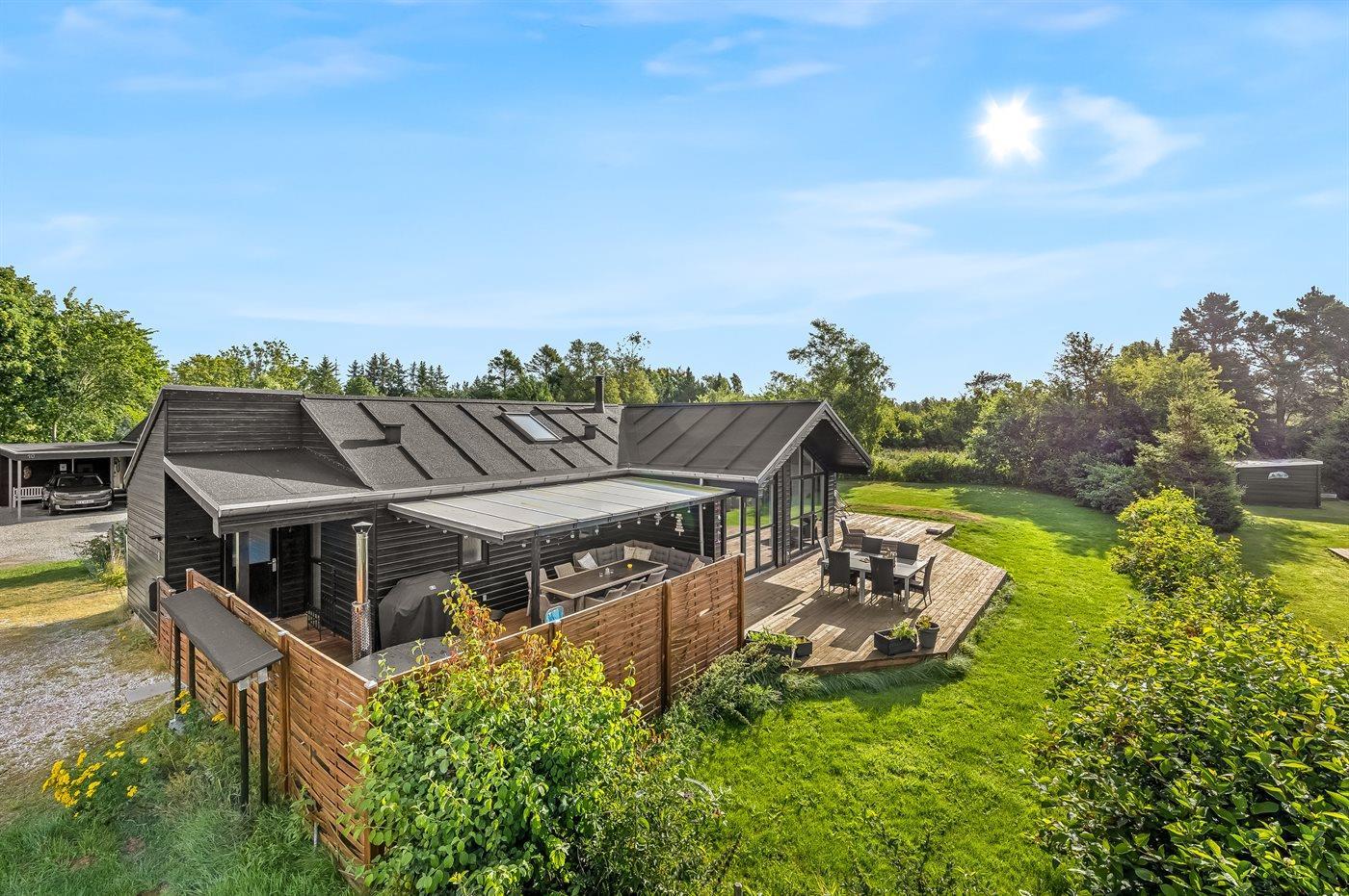 Zum Haus gehören eine große, sonnige Terrasse sowie eine überdachte Terrasse, sodass du das Leben im Freien bei jedem Wetter genießen kannst.