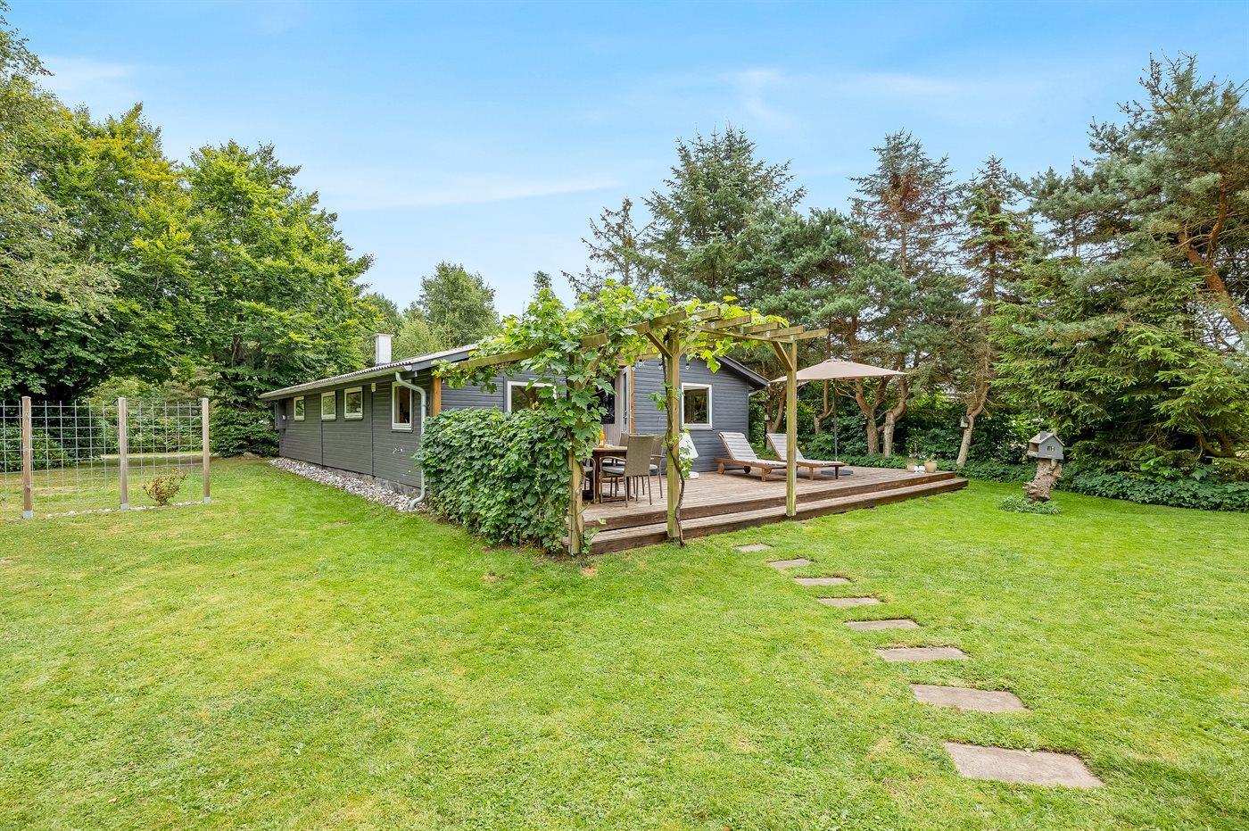 Die Ferienunterkunft liegt auf einem 1399 m² großen Gartengrundstück. Die Entfernung zum Meer beträgt 1300 m. Die Entfernung zum Fjord beträgt 6700 m. Die nächste Einkaufsmöglichkeit liegt 1300 m entfernt. In einem Abstand von 5500 m gibt es einen Golfplatz. Es steht ein offenes Terrassenareal zur Verfügung. Es gibt außerdem ein Orangerie. Es steht ein Grill zur Verfügung. Parkplatz auf dem Grundstück.