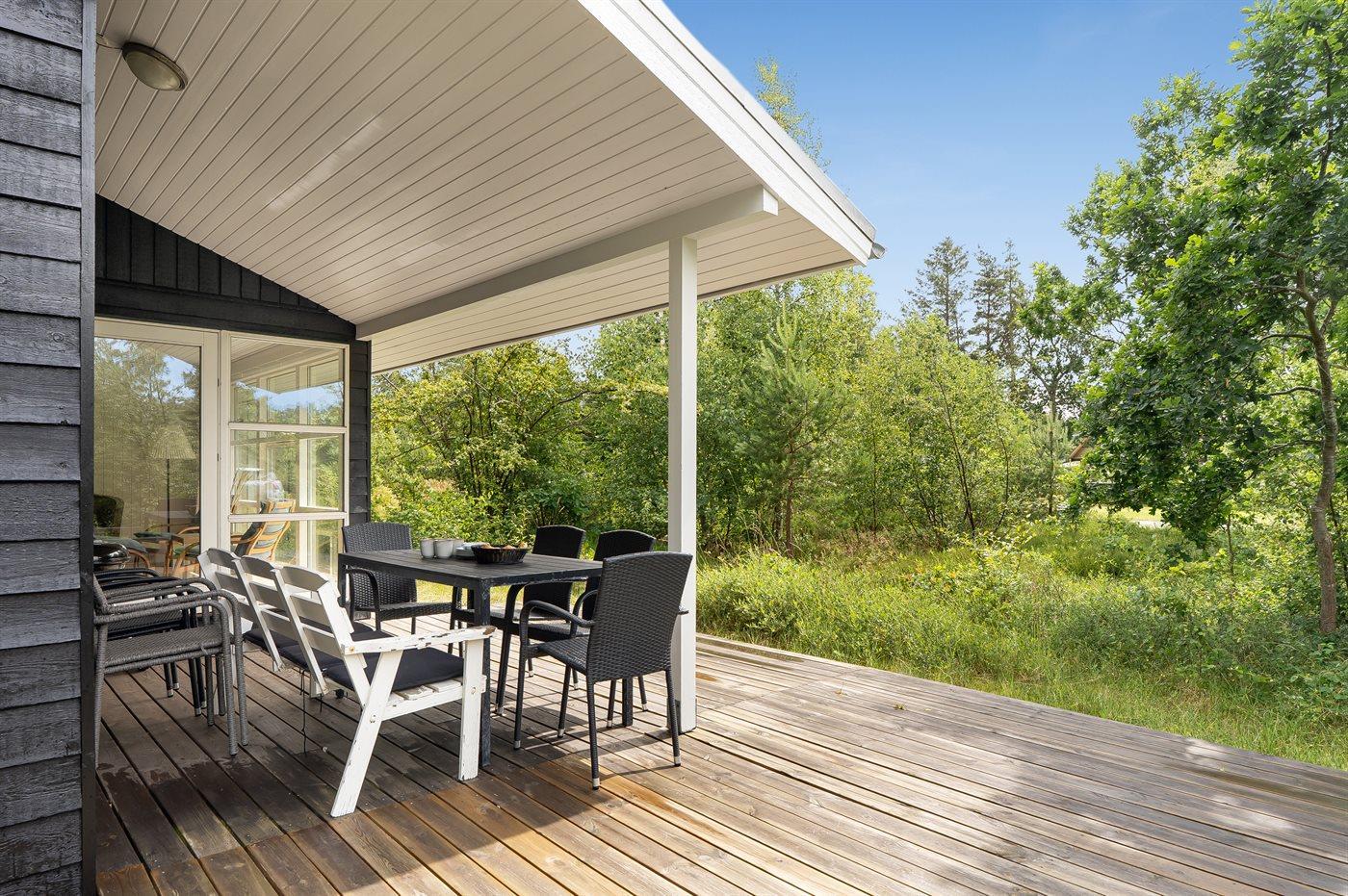 Die Ferienunterkunft liegt auf einem 1075 m² großen Naturgrundstück. Die Entfernung zum Meer beträgt 400 m. Die Entfernung zum Fjord beträgt 6000 m. Die nächste Einkaufsmöglichkeit liegt 1500 m entfernt. In einem Abstand von 4500 m gibt es einen Golfplatz. Es steht ein offenes Terrassenareal zur Verfügung. Außerdem gibt es überdachte Terrasse. Trampolin. Es steht ein Grill zur Verfügung. Parkplatz auf dem Grundstück.