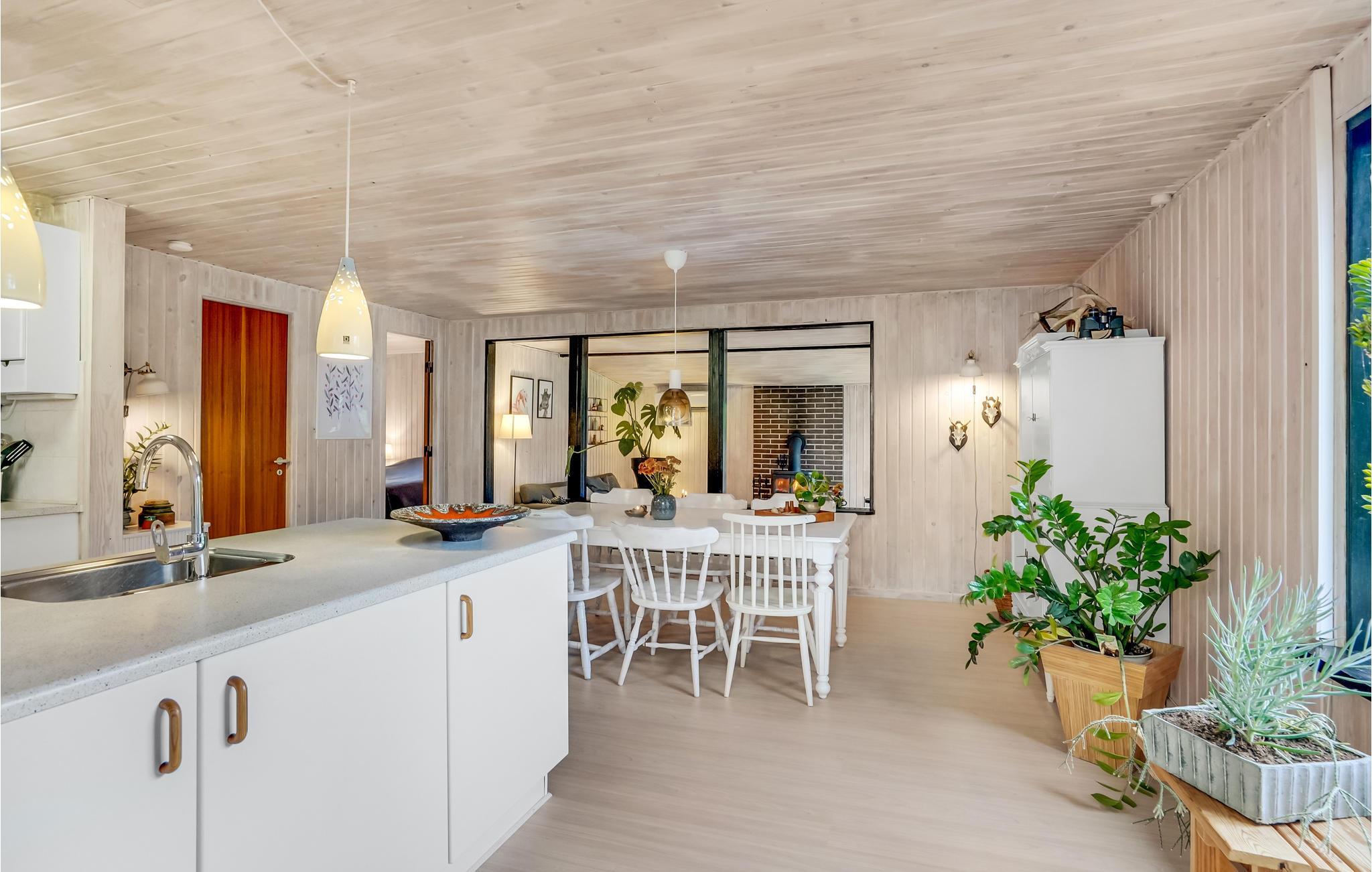 Ihr Ferienhaus in Hou liegt in einer ruhigen und grünen Umgebung und bietet ausreichend Platz für die ganze Familie. Die moderne und helle Einrichtung des Hauses schafft eine freundliche und behagliche Atmosphäre, in der Sie sich sofort wohlfühlen werden. Im Wohnbereich erwarten Sie gemütliche Sofas, ein Kaminofen und ein großer Fernseher, ideal für entspannte Abende oder für lustiges Zocken an der Spielkonsole. Die offene Küche ist gut ausgestattet und mit einem einladenden Essbereich verbunden, in dem Sie gemeinsame Mahlzeiten genießen können. Der Aktivitätsraum mit Billardtisch und Dart bietet Unterhaltung für Groß und Klein, während der gemütliche Wintergarten das ganze Jahr über für erholsame Momente sorgt.