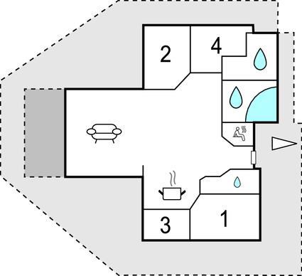 Badezimmer 14m2 (nr. 1) - WC. Warmes und kaltes Wasser. Dusche