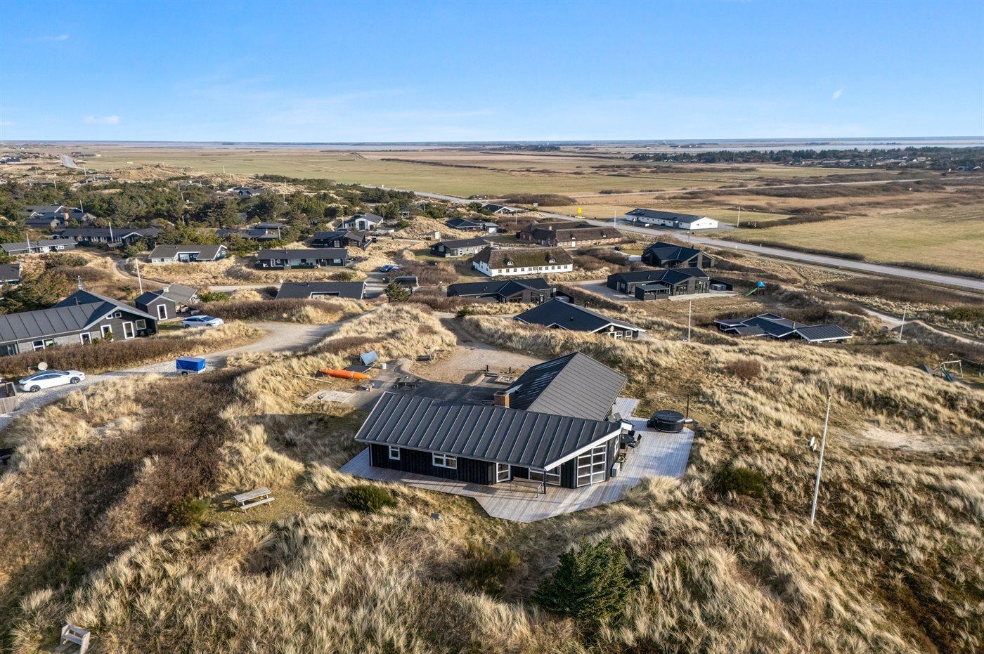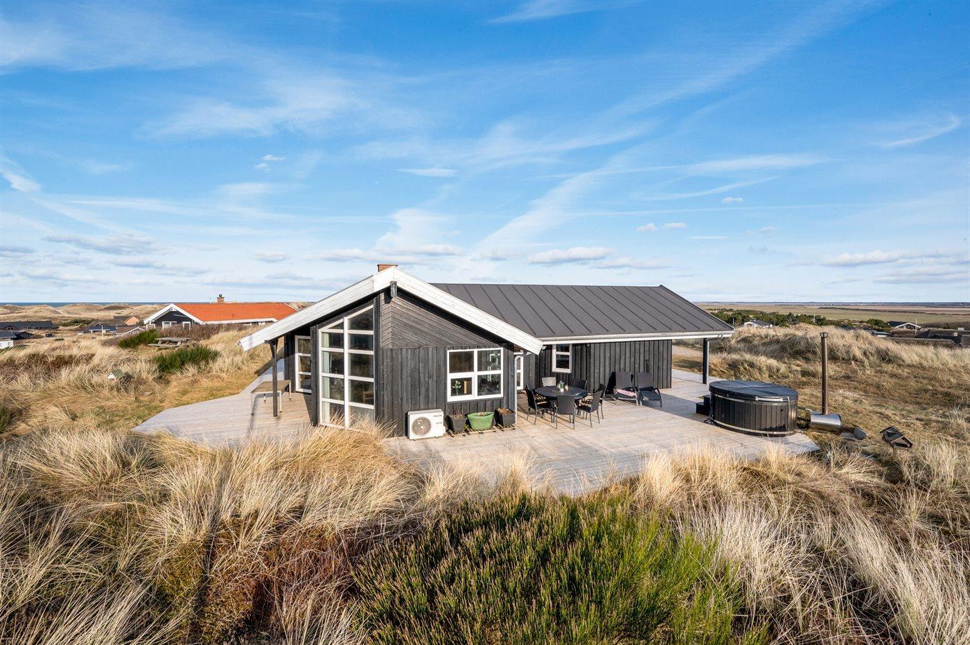 Ein phantastisch gelegenes Ferienhaus mit Blick auf die Dünenlandschaft, das Meer und den Fjord.