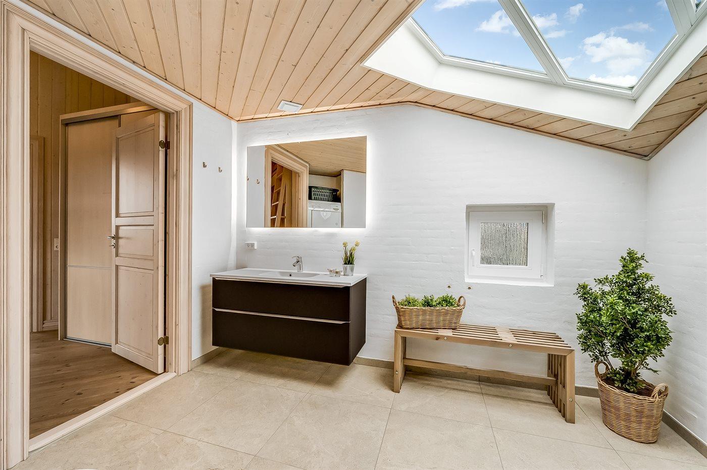 Es gibt 1 Badezimmer mit Fußbodenheizung, Duschnische Toilette. Es steht eine Sauna zur Verfügung in der Sie sich so richtig entspannen können.