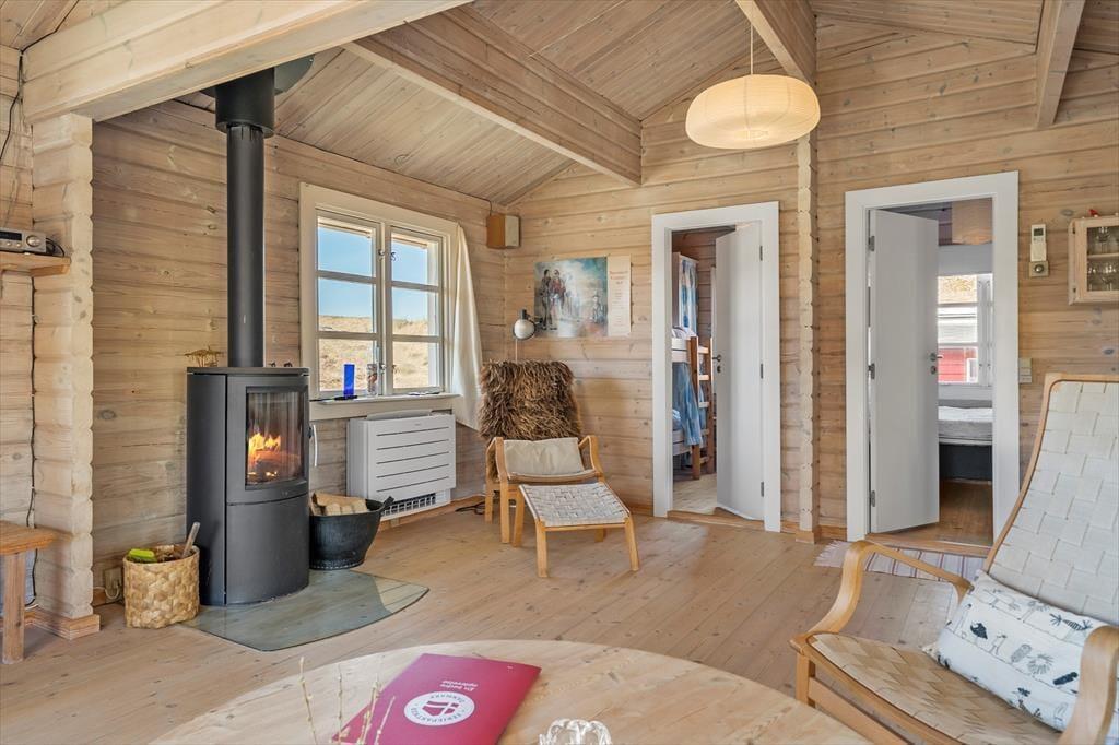 Dieses Ferienhaus macht seinem Namen "Bjælkehytten" alle Ehre. Der Name passt hervorragend zu diesem rotgestrichenen Holzhaus, das mit seinem begrünten Dach und den weißen Sprossenfenstern zu verzaubern weiß. Im Inneren des 71 m² großen Mietobjekts erwarten Sie Gemütlichkeit und Charme. Die schöne Atmosphäre ist maßgeblich auf die rustikalen Holzwände, die hohen Decken und die komfortable Möblierung zurückzuführen. Im Wohnraum können Sie sich wunderbar in der Sofagruppe entspannen oder sich rund um den Esstisch gesellen und dort gemeinsam die Mahlzeiten genießen oder einen vergnügten Spieleabend verleben. Die offene Küche grenzt direkt an den Essbereich. An kühlen Tagen sorgt der romantisch knisternde Kaminofen für ein Maximum an behaglicher Wärme und typisch dänischer Ferienhausstimmung. Unterstützt wird der Kaminofen durch eine zeitgemäße Wärmepumpe. Im Badezimmer werden Sie mit einer Fußbodenheizung und einem Handtuchtrockner verwöhnt. Die Schlafplätze verteilen sich auf insgesamt drei Schlafräume, von denen zwei mit je einem Doppelbett eingerichtet sind. Im dritten Schlafraum steht ein Etagenbett bereit. Somit beherbergt dieses Urlaubsdomizil problemlos vier Erwachsene und zwei Kinder. Die jüngsten Urlaubsgäste dürfen sich außerdem auf Spielsachen freuen, die im Schlafraum mit dem Etagenbett bereitstehen.