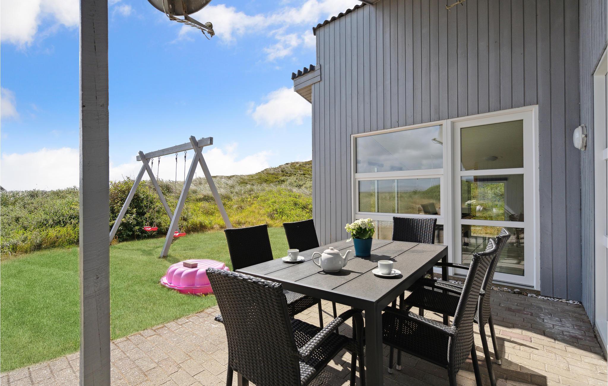 Dieses schöne, praktisch eingerichtete Ferienhaus liegt nur 500 m von der Nordsee entfernt. Das Haus ist mit einem großen Aktivitätsraum und Sauna ausgestattet und deshalb extra attraktiv. Die vier Schlafzimmer und der Hems (Schlafboden) lassen 10 Personen im Haus übernachten. Darüber hinaus sind auch zwei Badezimmer sowie eine große, gut ausgestattete Küche vorhanden. Im schön möblierten Wohnraum steht der Kaminofen, der an kühleren Tagen für viel Wärme sorgt.Von hier aus gelangen Sie auch auf die große Terrasse die teilweise überdacht ist. Dieses attraktive Ferienhaus lässt Sie die lauen Sommernächte richtig genießen.