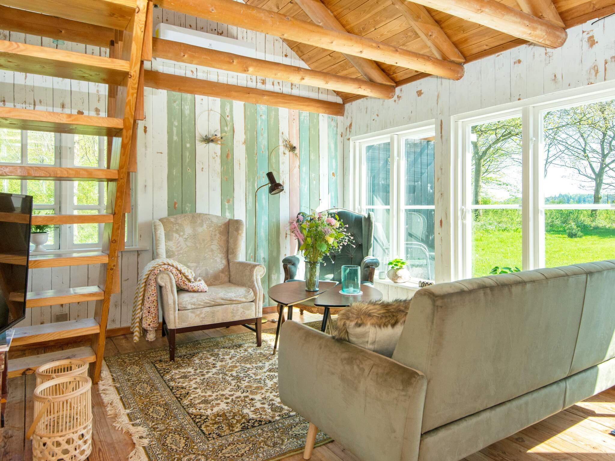 Der gemütliche offene Küchen- und Wohnbereich ist ideal für das Familienleben und verfügt über eine klimafreundliche Wärmepumpe für ganzjährigen Komfort. Das Haus verfügt außerdem über ein Badezimmer mit Waschmaschine – ein zusätzlicher Komfort für längere Aufenthalte. Vom Wohnbereich aus gelangt man auf die große Terrasse mit Blick auf die umliegenden Wälder und Felder – ein ruhiger Ort zum Entspannen oder für Mahlzeiten im Freien.