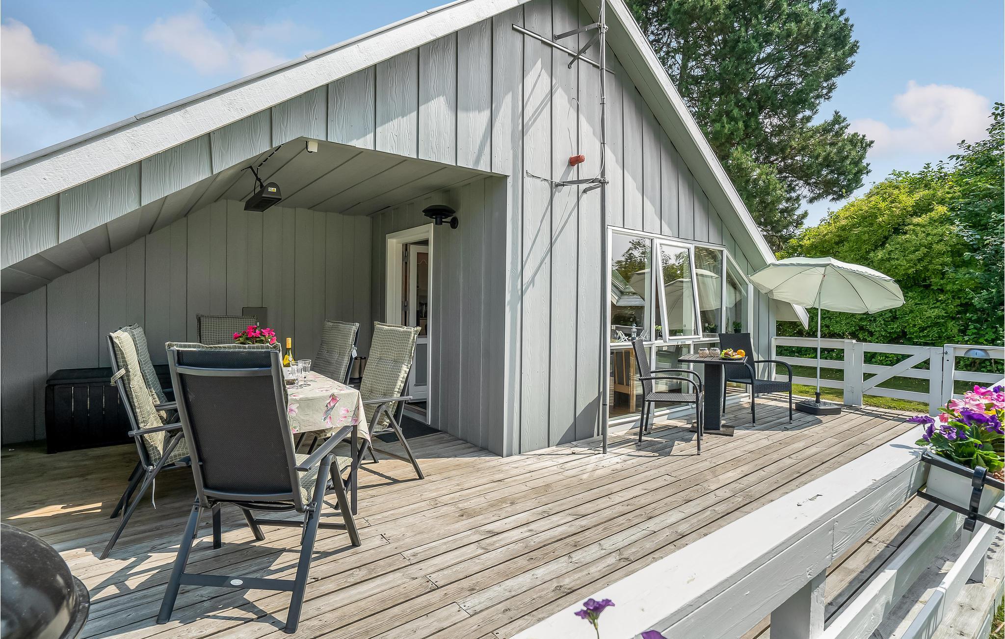 Das Haus steht auf einem teilweise geschlossenen Grundstück in ruhiger Umgebung, nur 250 Meter vom Minigolf und dem Strand mit guten Angelmöglichkeiten entfernt. Draußen erwarten Sie eine überdachte und offene Terrasse, auf der Sie die langen Sommerabende genießen können. Im Haus gibt es ein Badezimmer mit Sauna und einen Whirlpool für zwei Personen. Die offene Küche ist mit dem Wohnzimmer verbunden. Das Haus wird mit einer Wärmepumpe und elektrischen Heizungen, sowie einem gemütlichen Kamin beheizt. Im Carport gibt es eine 16A/22 kW Ladestation mit Typ2-Anschluss zum Laden eines Elektroautos.