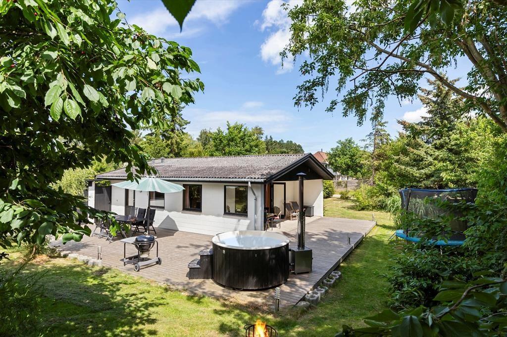 Das Ferienhaus ist von einem schönen Garten umgeben, der sowohl Entspannung als auch Spaß für die ganze Familie bietet. Auf der großen, teilweise überdachten Terrasse kannst du den Morgenkaffee in der Sonne genießen oder mit der Familie gemütliche Grillabende verbringen. Kinder können sich auf dem Trampolin austoben, während die Erwachsenen an der Feuerstelle Stockbrot rösten oder Marshmallows schmelzen lassen.