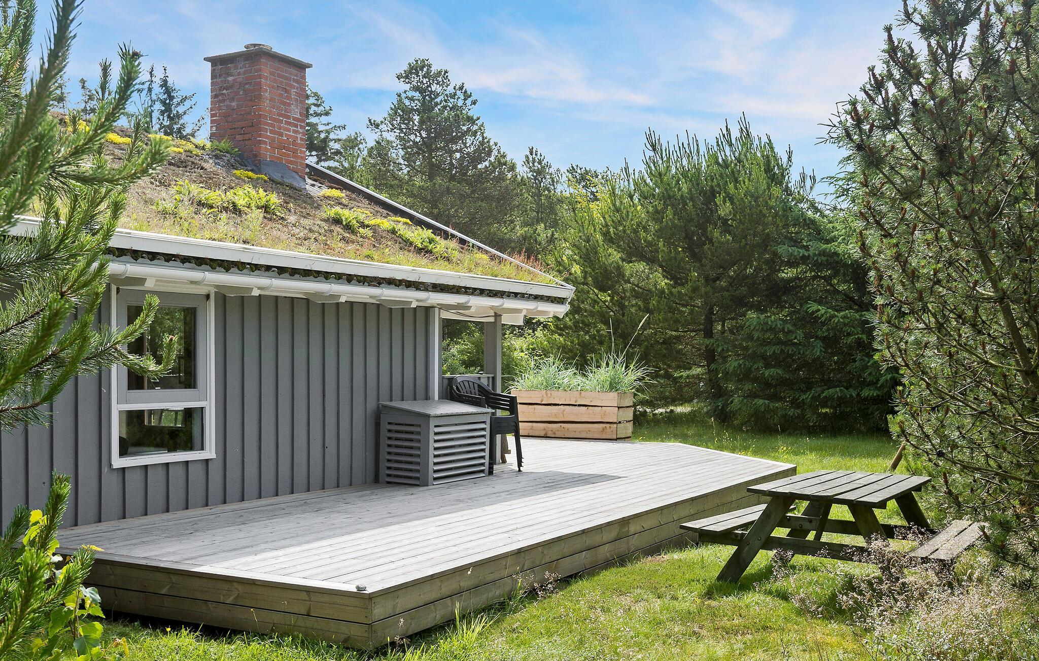 Gemütliches Holzferienhaus in ruhiger Lage nahe dem Strand in Hune, ideal für entspannte Familienferien und Aktivitäten im Freien.