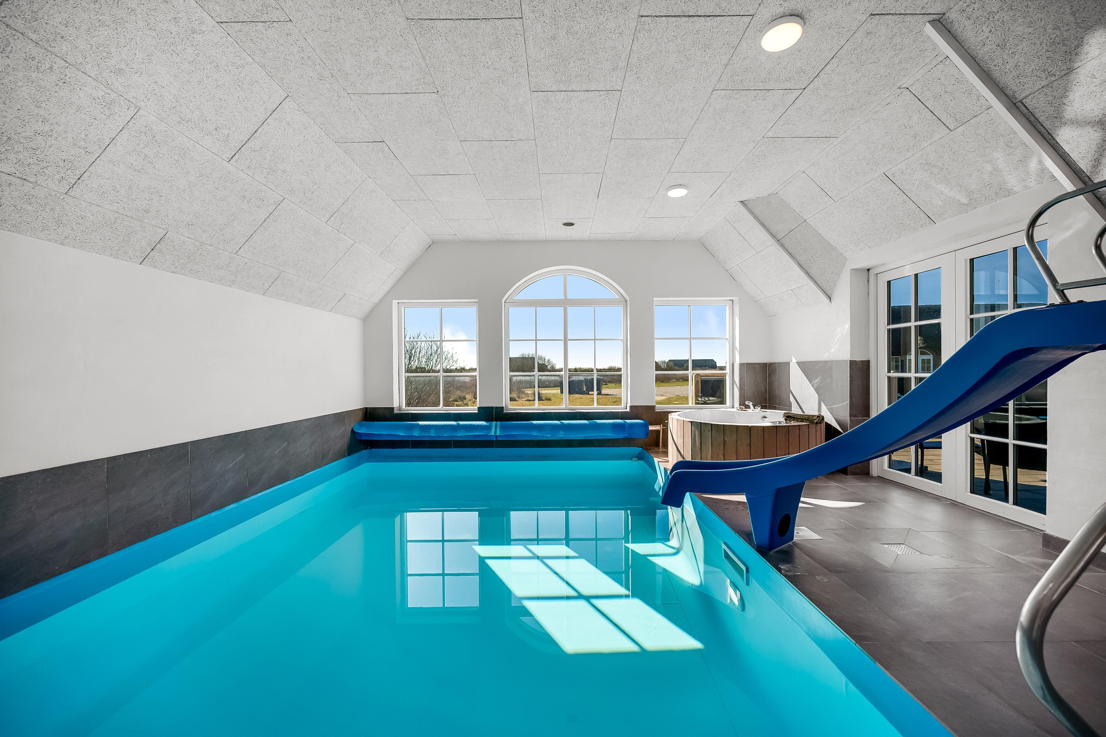 Zur Ausstattung des Hauses gehören drei Badezimmer, alle mit Duschen, und Fußbodenheizung, die auch an kalten Tagen für eine angenehme Atmosphäre sorgt. Es gibt außerdem einen Indoor-Whirlpool für zwei Personen sowie eine Sauna, in der Sie sich nach einem langen Tag voller Aktivitäten entspannen und verwöhnen lassen können. Für zusätzlichen Spaß sorgt die Wasserrutsche im Pool, die Kinder und Erwachsene gleichermaßen begeistert.