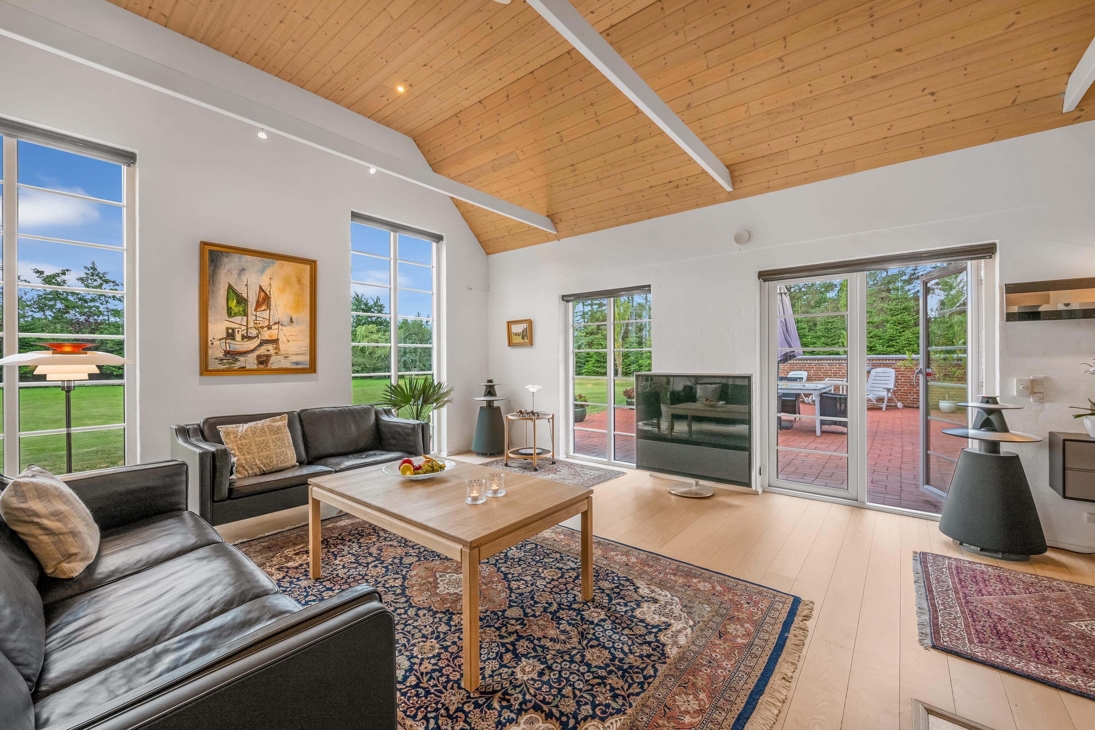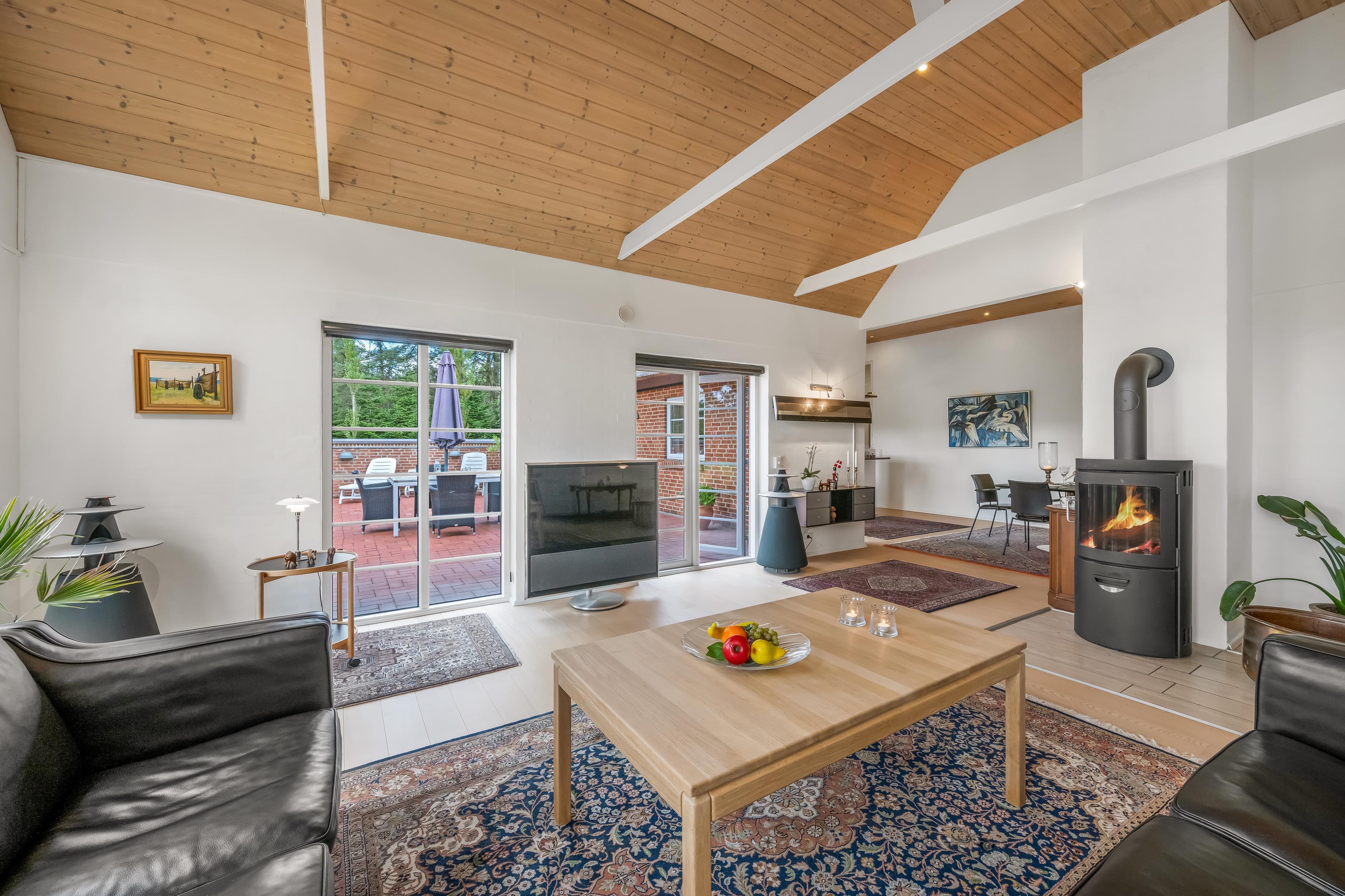 Was die Ausstattung betrifft, bietet dieses Haus alles, was Sie für einen komfortablen Aufenthalt benötigen. Das geräumige Wohnzimmer mit einem gemütlichen Holzofen und einer energiesparenden Wärmepumpe, die auch als Klimaanlage genutzt werden kann, ist der perfekte Ort zum Entspannen nach einem erlebnisreichen Tag. Hier können Sie bei einem guten Film auf dem Fernseher entspannen, der auch dänische und deutsche Fernsehsender sowie Apple TV zum Streamen Ihrer Lieblingssendungen bietet.