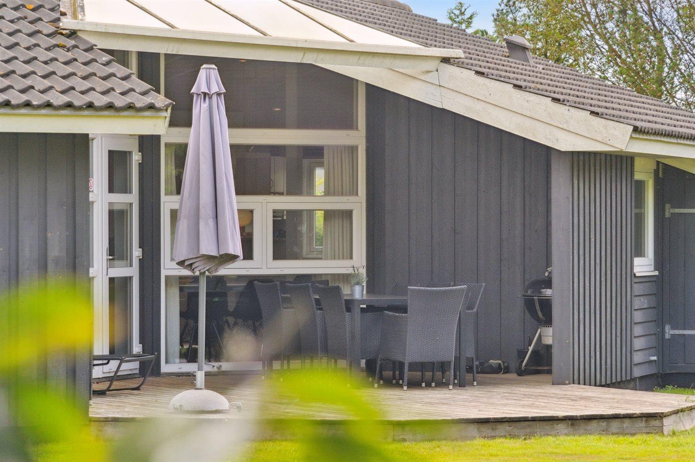 Der schöne Garten ist ein herrlicher Ort um sich zu Entspannen. Das Grundstück liegt ungestört und hier können sich die Kinder auf der großen Rasenfläche austoben. Das Ferienhaus verfügt über einen schönen Terrassenbereich, der teilweise überdacht ist, sodass man die schönen Sommerabende genießen kann, selbst wenn der Tau fällt. Auf der Terrasse kann man die Ruhe in vollen Zügen genießen, und es gibt immer die Möglichkeit, eine schöne, windgeschützte Ecke zu finden.