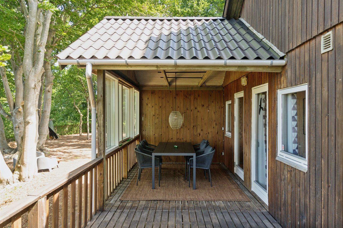 Es gibt teilweise überdachte Terrassen auf beiden Seiten des Hauses. Das Ferienhaus liegt auf einem großen Naturgrundstück in absolut ungestörter Lage – besonders auf der Rückseite des Hauses, wo sich auch die sehr gemütliche, überdachte Terrasse befindet. Die Umgebung lädt zu Spaziergängen in der schönen Natur ein. In der Umgebung findest du außerdem eine Eisdiele und ein kleines Café.