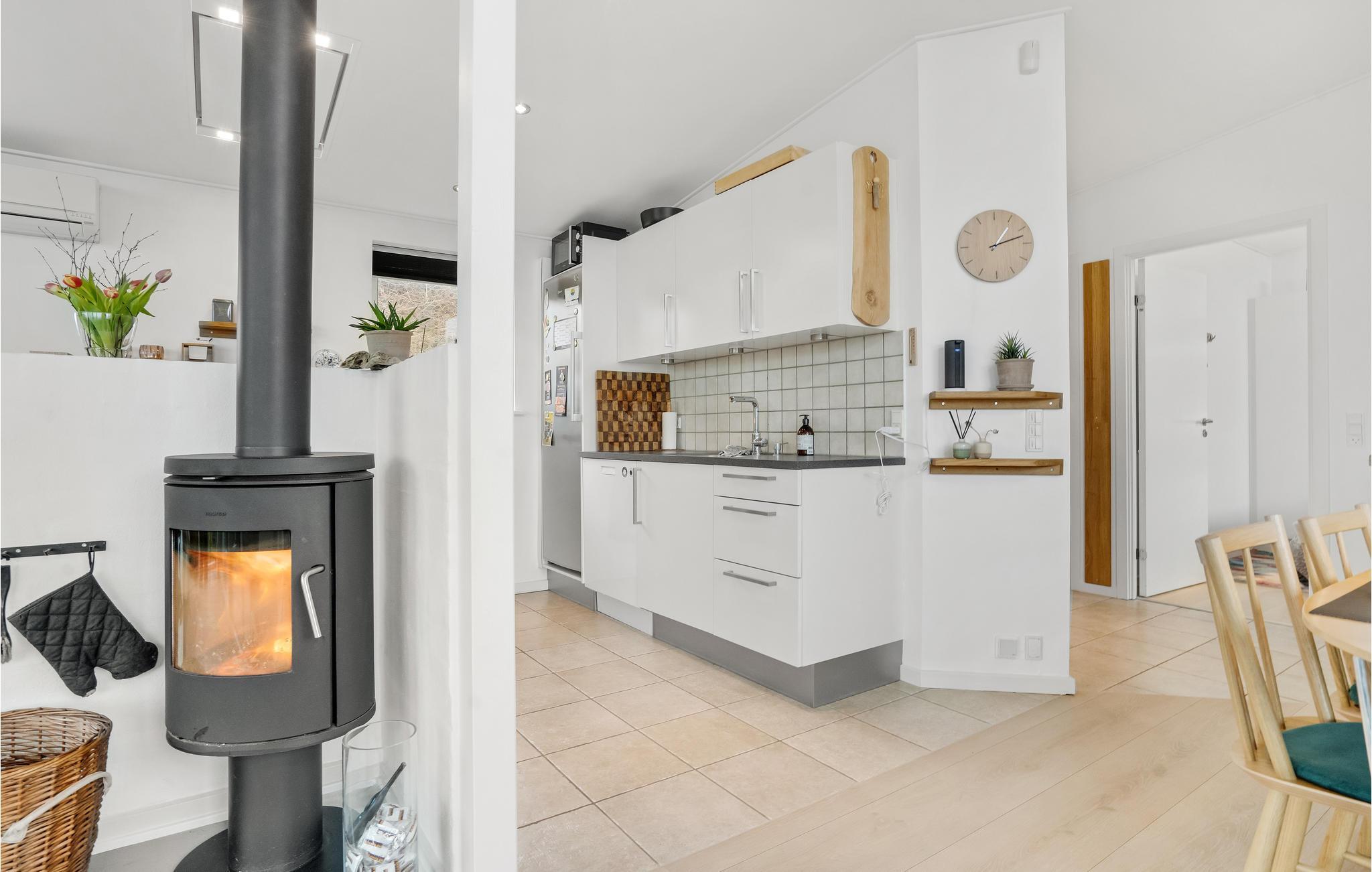 Auf zwei Etagen empfängt Sie dieses moderne und lichtdurchflutete Ferienhaus. Machen Sie es sich mit Ihrer Familie in der oberen Etage gemütlich. Durch die großen Fenster gelang viel natürliches Licht, dass Ihnen den Aufenthalt im Wohnbereich bereichert. Erleben Sie hier eine tolle Zeit beim Kochen, Essen, Spielen, Filmschauen oder Lesen. Besonders ist auch der Zugang auf die große Dachterrasse, auf der Sie es sich in den Sommermonaten bequem machen können und den Blick auf den Vejle Fjord und die Sanddüne genießen können.