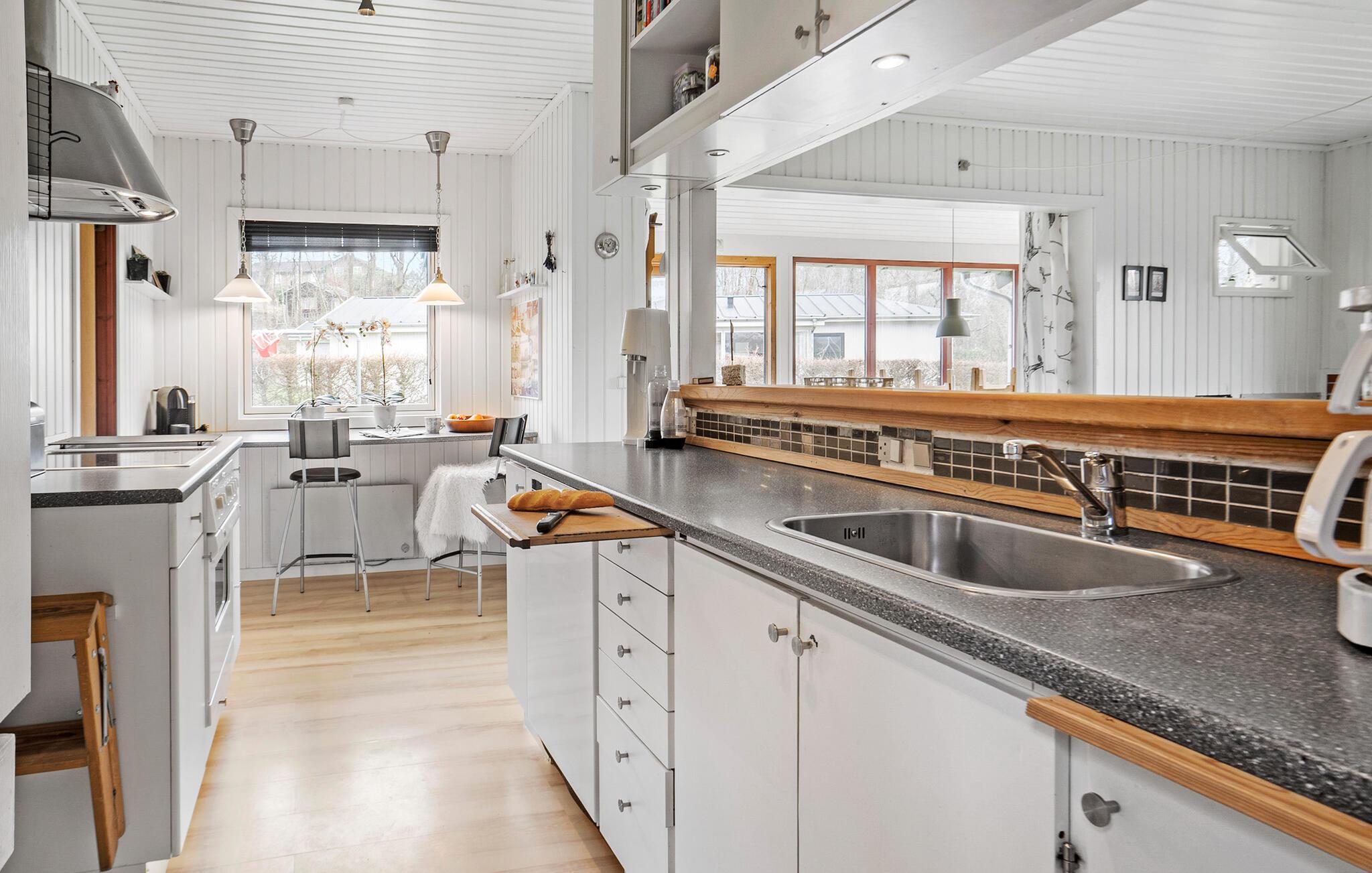 Freuen Sie sich auf einen erholsamen Familienurlaub in diesem familiären Ferienhaus. Mehrere Schlafzimmer, und der helle Wohnraum mit anschließendem Esszimmer laden zu geselligen Stunden mit Ihren Lieben ein. Genießen Sie das Tageslicht, das durch die zahlreichen Fenster ins Haus gelangt und wärmen sich an dem charmanten Holzofen. Setzen Sie sich an den Küchentresen, während die Hobbyköche der Familie in der Küche zaubern und treten hinaus in den Garten und sonnen sich auf den Gartenmöbeln. Schauen Sie Ihren Kindern beim Spielen im Garten zu und lassen sich das Schiff, das auf dem Grundstück steht, entdecken.