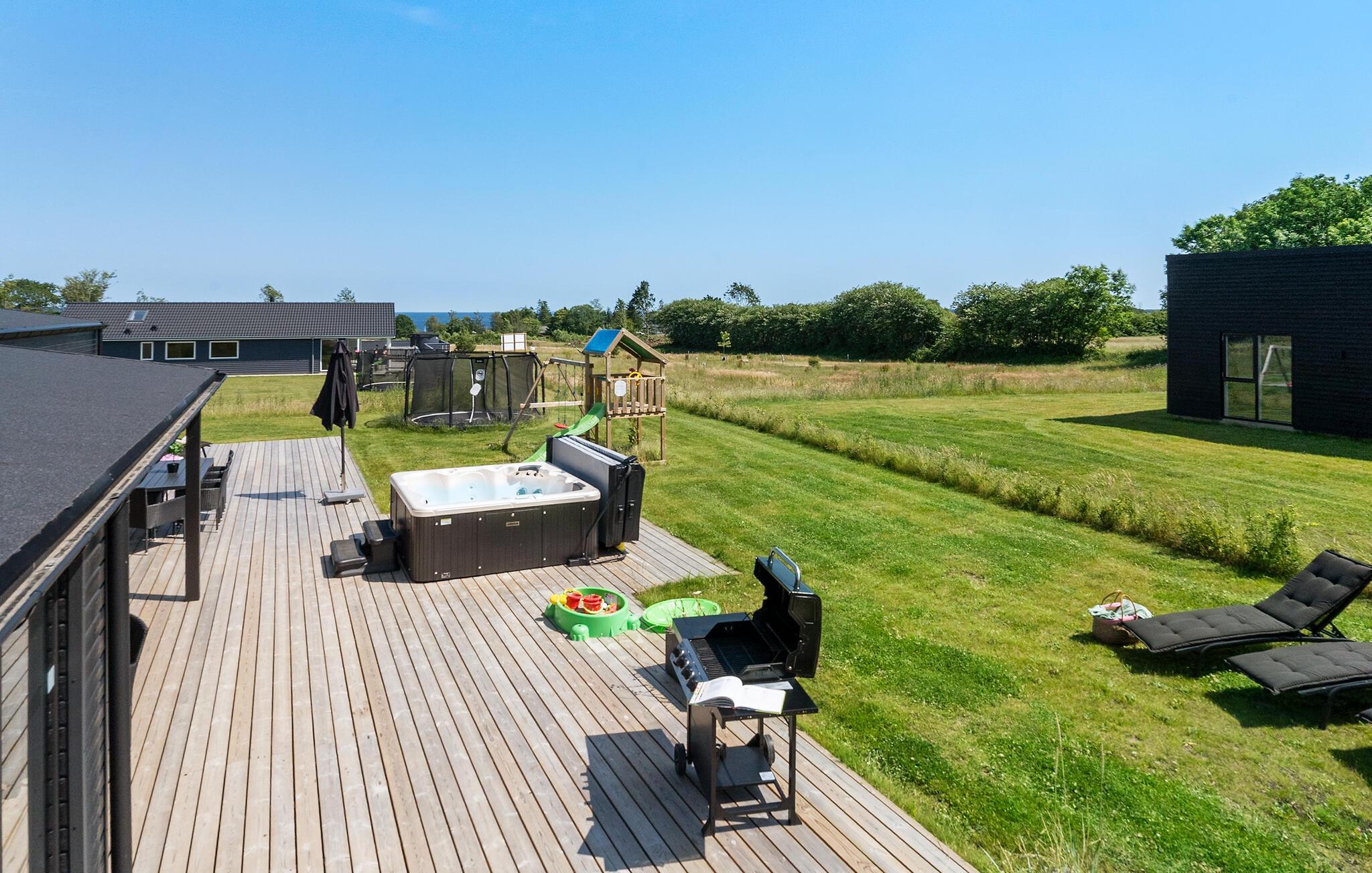 Genießen Sie wunderbare Stunden im Außenbereich des Hauses. Nehmen Sie ein Sonnenbad im Liegestuhl, lassen Sie den Blick über die Umgebung schweifen, entspannen Sie in Sauna und Whirlpool und bereiten Sie im Freien leckere Gerichte auf dem Grill zu.