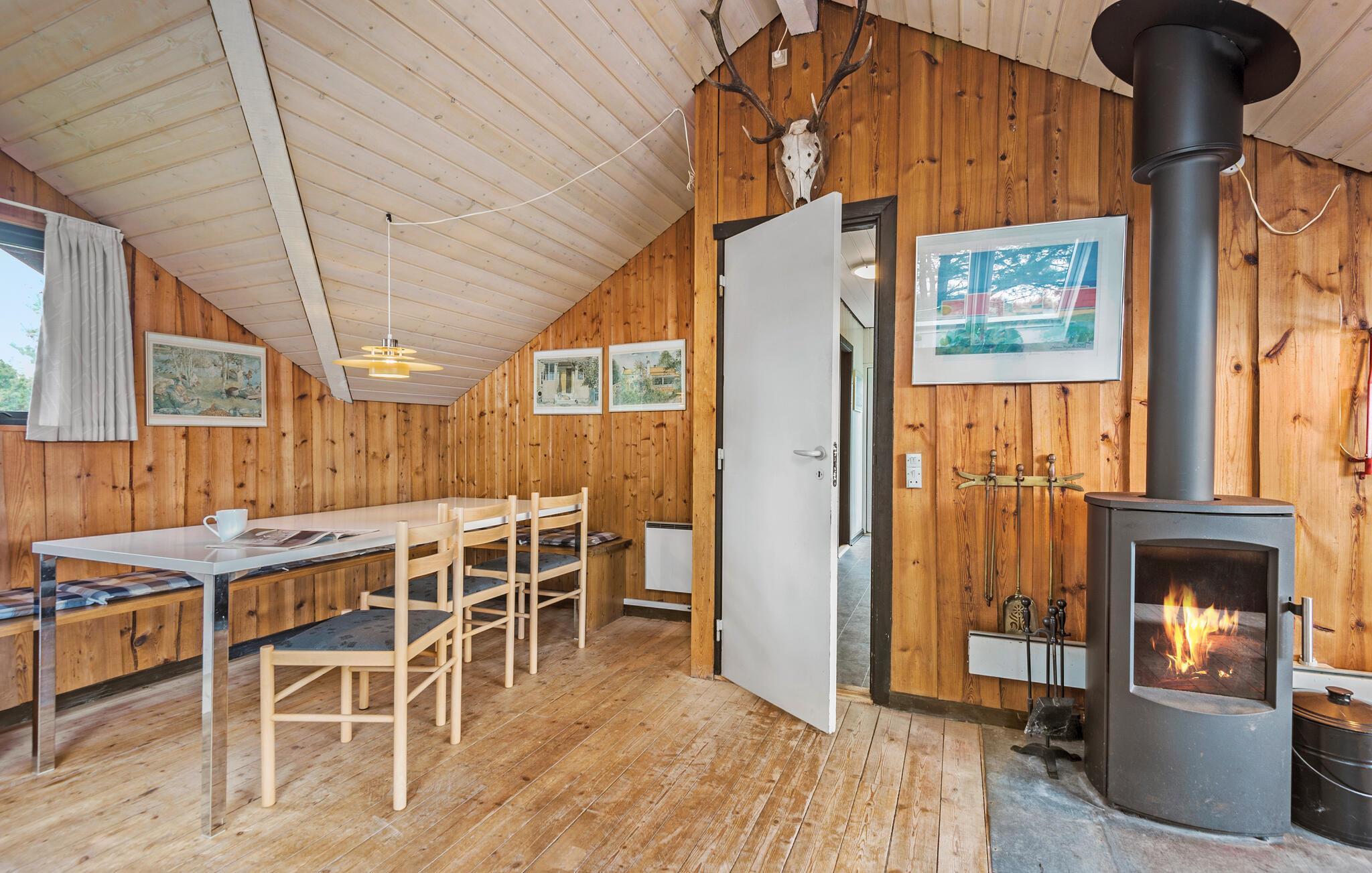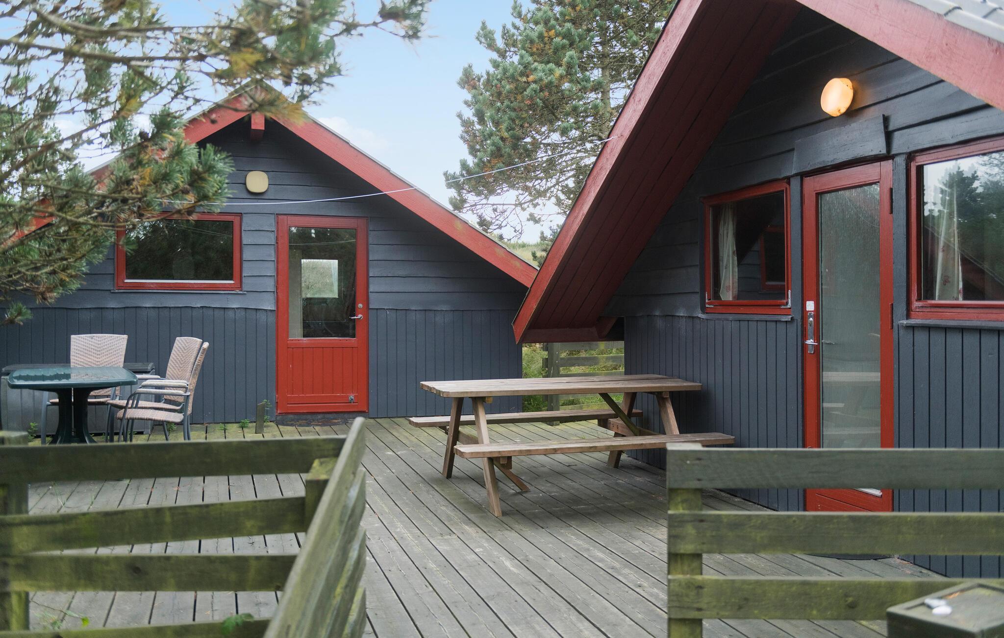 Idyllisches Holzferienhaus nahe Hvidbjerg Strand mit Kamin, Terrasse und Naturblick für entspannte Familienferien.