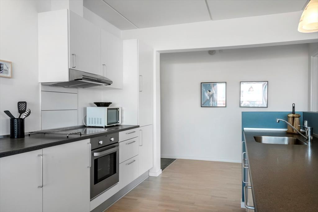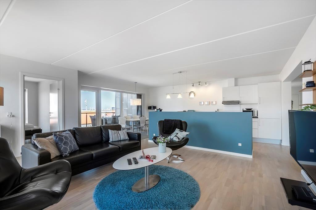 Die mit einem Fahrstuhl erreichbare Ferienwohnung befindet sich im ersten Stockwerk eines gepflegten Gebäudes. Die Wohnung ist ansprechend eingerichtet und verwöhnt mit einem schönen Tageslichteinfall und einer Fußbodenheizung. Neben dem Eingangsbereich erwartet Sie ein Hauswirtschaftsraum mit einer Waschsäule. Das Badezimmer beinhaltet eine Duschnische. Die beiden Schlafräume verfügen über je zwei Schlafplätze und Schrankfläche. In einem der Schlafräume steht Ihnen ein Fernseher zur Verfügung. In der modernen, gut ausgestatteten Küche wird die gemeinsame Zubereitung kleiner und großer Mahlzeiten zum reinen Vergnügen. Den ungeliebten Abwasch übernimmt selbstverständlich der Geschirrspüler. Ihre Mahlzeiten servieren Sie am Esstisch, der im Wohnraum platziert ist. In Letztgenanntem entspannen Sie sich anschließend auf der guten Polstergarnitur vor dem Fernseher. Zur Wohnung gehört ein Abstellraum mit einem Tiefkühler. Von Ende März bis Ende Oktober können Mieter dieser Wohnung kostenfrei den Fischreinigungsplatz beim Campingplatz von Hvide Sande nutzen.