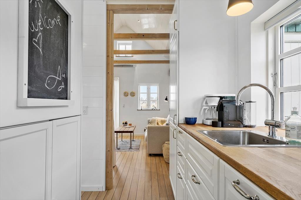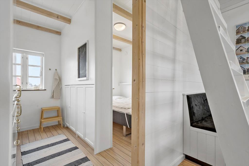 Træder du ind i denne hyggelige feriebolig, mærker du med det samme, hvordan roen sænker sig. Indretningen er varm og enkel – et sted, hvor man hurtigt føler sig hjemme. I stuen kan I samles omkring spisebordet med friskbagte rundstykker og kaffe fra det nærliggende bageri, og sofahjørnet indbyder til afslapning efter en dag fuld af oplevelser. Det separate soveværelse tilbyder en god nats søvn, mens fjordens stille bølger og stemningen fra den nærliggende Tyskerhavn skaber en fredfyldt kulisse, der inviterer til ro og fordybelse. Badeværelset er pænt og praktisk indrettet, og det samlede udtryk emmer af feriehygge og enkel komfort. Her er plads til både nærvær og afslapning, uanset om dagen står på byliv, naturoplevelser eller bare ro og fred.