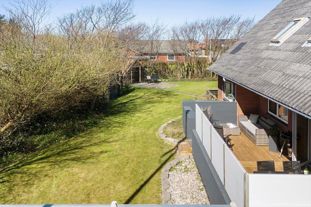 Draußen erwartet dich eine private Holzterrasse - du kannst recht ungestört die Sonne bei einem leckeren Kaffee genießen oder euer Abendessen auf dem Grill zubereiten – mit Blick auf den begrünten Garten. Von der Terrasse aus gelangst du direkt in den dazugehörigen Gartenbereich und dieser lädt sowohl zum Relaxen als auch zu Aktivitäten wie Ballspielen ein. Besonders zu erwähnen ist auch das große Gartenhaus – ein echtes Plus an der Sache: Jeder Wohneinheit steht ein abschließbarer Raum zur Verfügung – mit reichlich Platz für Surfausrüstung, E-Bikes, Angelausrüstung und alles, was zum aktiven Outdoorleben dazugehört. Hier findest du auch einen Fischreinigungsplatz, wo du deinen Fang des Tages bequem für den Grill vorbereiten kannst. Und das Auto wird direkt in der Einfahrt geparkt – einfacher geht’s nicht.