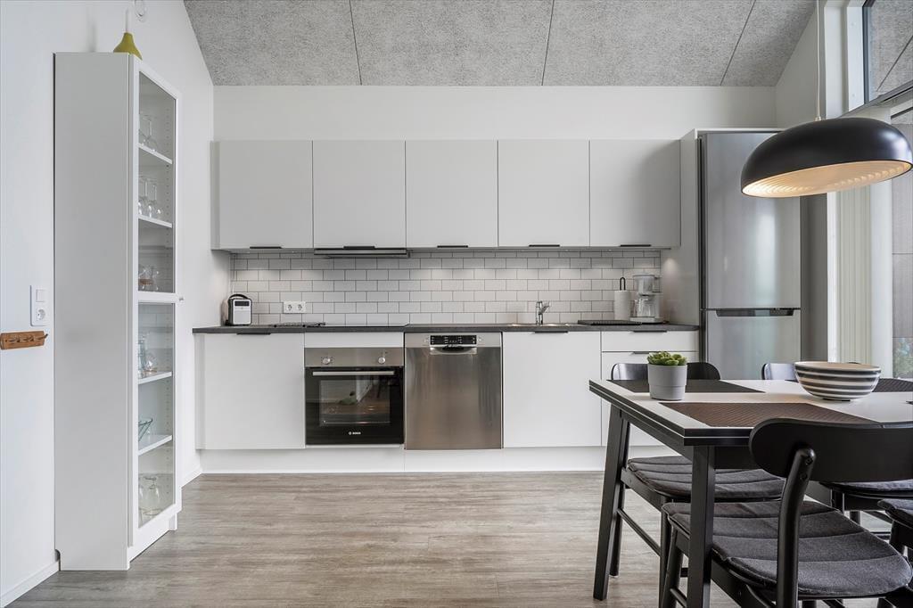 Diese moderne Ferienwohnung befindet sich im ersten Stock eines architektonisch gestalteten Gebäudes aus dem Jahr 2020. Mit ihrer hohen Lage und den großen Fensterfronten strömt viel natürliches Licht hinein, wodurch eine fantastische Aussicht auf die schöne Umgebung geboten wird. Die Einrichtung ist sowohl stilvoll als auch komfortabel, sodass Sie sich sofort wie zu Hause fühlen werden. Das Wohnzimmer und die Küche sind in einem offenen Wohnbereich vereint, in dem Sie schöne Momente mit Freunden oder einem Partner genießen können. Nach einem erlebnisreichen Tag können Sie sich im Sofa entspannen oder sich um den Esstisch versammeln und ein köstliches Abendessen mit lokalen Delikatessen oder frisch gefangenem Fisch genießen. Die Wohnung umfasst auch ein elegantes Badezimmer mit Dusche und ein gemütliches Schlafzimmer, damit Sie nach einem ereignisreichen Tag in Komfort entspannen können.