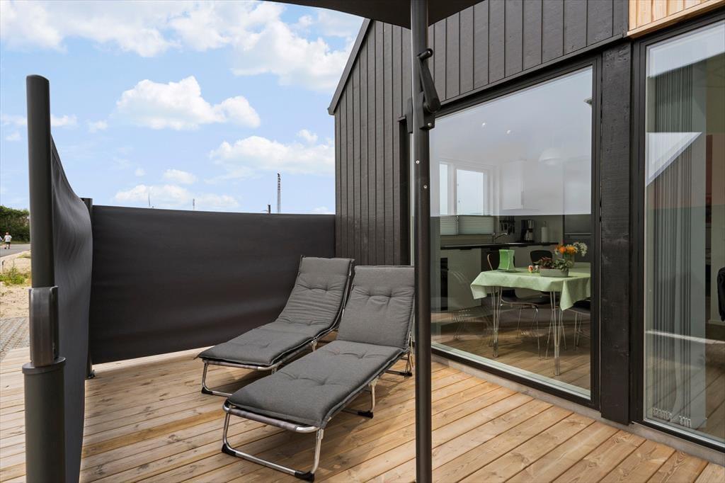 Die nach Südwesten ausgerichtete Holzterrasse lädt zu traumhaft entspannten Stunden unter dem hohen Himmel ein. Hier genießen Sie eine wohlverdiente Pause im Liegestuhl oder ein köstliches Essen vom hauseigenen Grill. Zum Haus gehört ein Parkplatz, auf dem Sie Ihren Pkw aufgrund der zentralen Lage in Hvide Sande eigentlich den gesamten Urlaub über stehen lassen können.