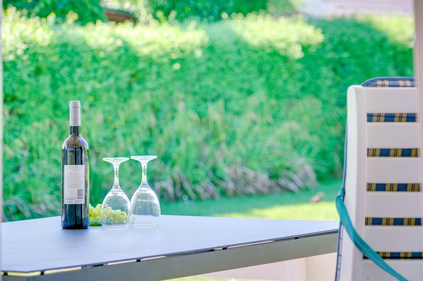 Die Ferienunterkunft liegt auf einem 800 m² großen Gartengrundstück. Die Entfernung zum Meer beträgt 100 m. Die nächste Einkaufsmöglichkeit liegt 5000 m entfernt. Es steht ein 65 m² Terrassenareal zur Verfügung. Außerdem gibt es 20 m² überdachte Terrasse. Es steht ein Grill zur Verfügung. Parkplatz auf dem Grundstück.