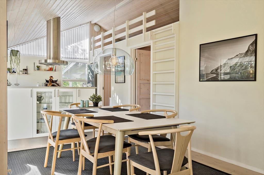 Dank der gut durchdachten Aufteilung des Hauses können sich hier leicht und bequem bis zu sechs Personen für einen schönen gemeinsamen Urlaub versammeln. Ein großer Teil der 106 m² des Hauses ist einem großen Wohnbereich gewidmet, der aus einer gut ausgestatteten Küche und einem gemütlichen Wohnzimmer in offener Verbindung besteht. Der Holzofen und die Wärmepumpe stehen bereit, um an kühlen Abenden für energieeffiziente Wärme zu sorgen. Und wenn Sie sich in der Sofaecke völlig entspannen möchten, können Sie den Tag mit einem guten Film auf dem Flachbildfernseher ausklingen lassen, der mit Satellitenempfang und Chromecast ausgestattet ist. Zur Ausstattung gehören drei Schlafzimmer sowie ein geräumiges Badezimmer mit Dusche, Waschmaschine und Fußbodenheizung.