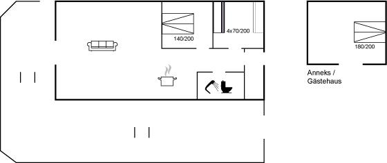 Die Schlafplätze verteilen sich auf 3 Schlafräume. 4 Schlafplätze in Doppelbetten. 4 Schlafplätze in Etagenbetten. 2 von diesen Schlafplätzen befinden sich im Gästehaus.