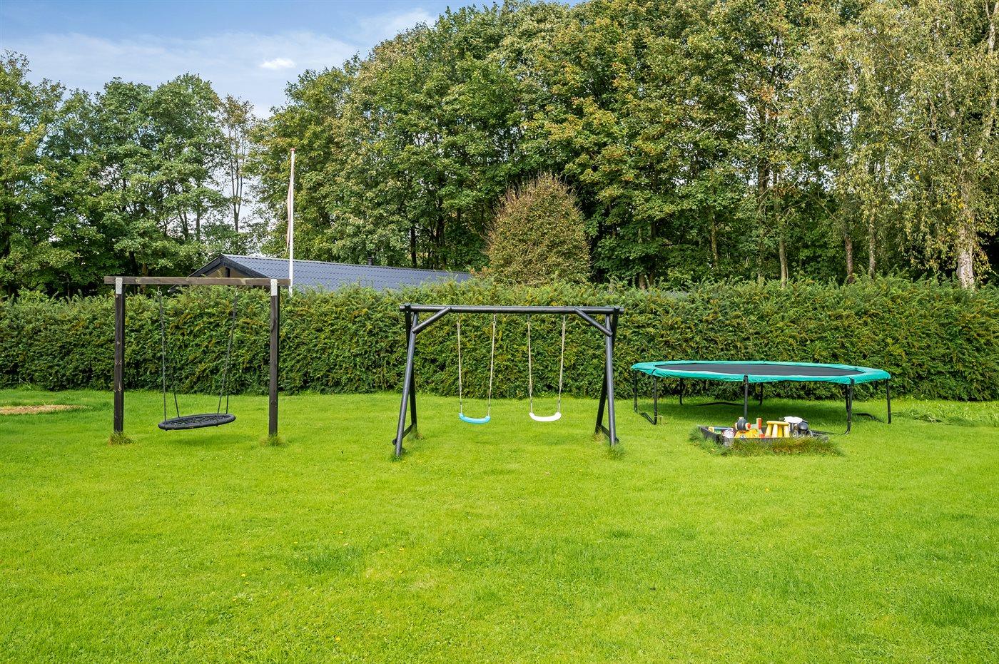 Nur 350 Meter vom Ferienhaus entfernt findest du einen Bereich mit Multifunktionsspielfeld und einem großen Spielplatz.
