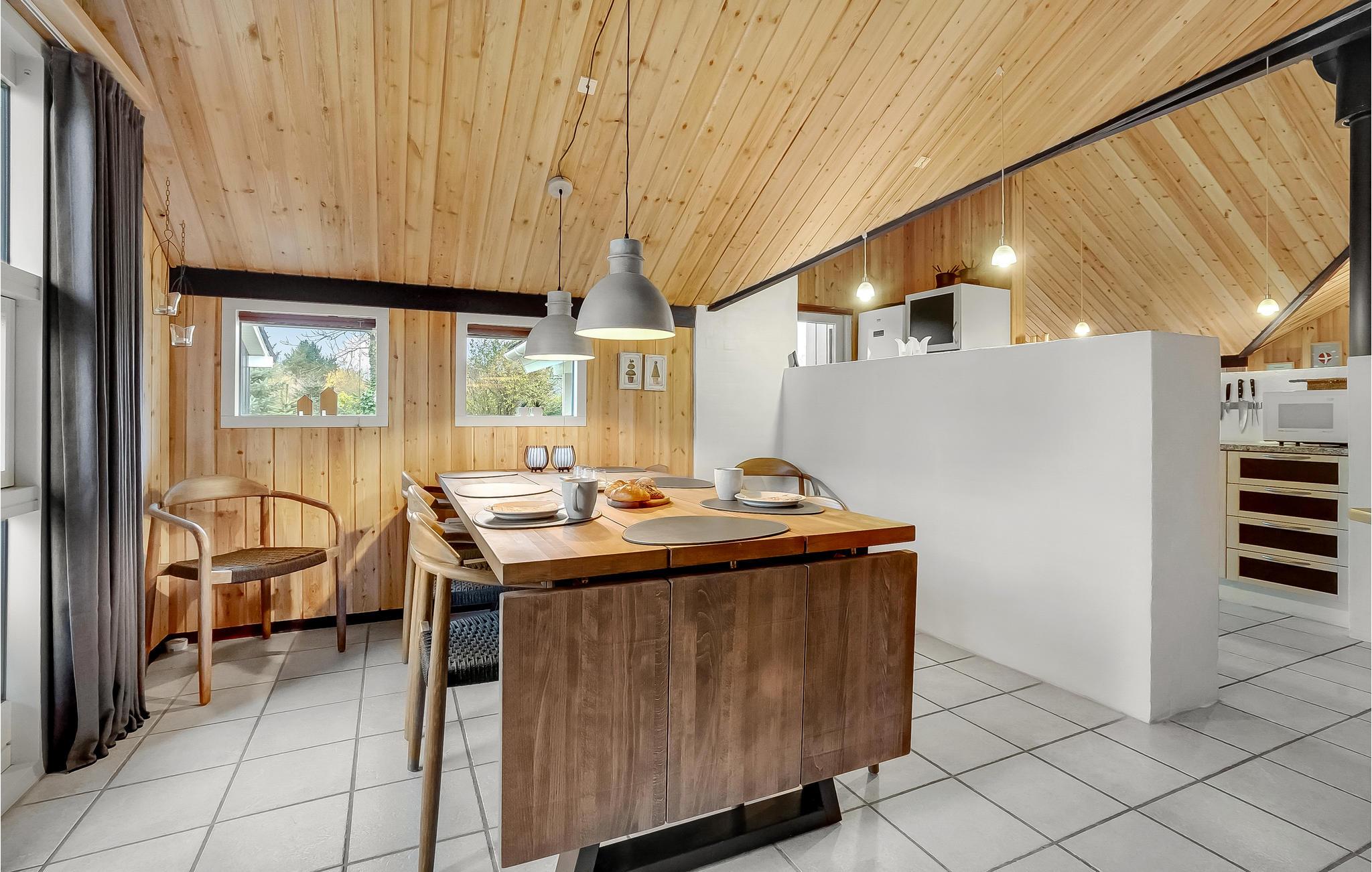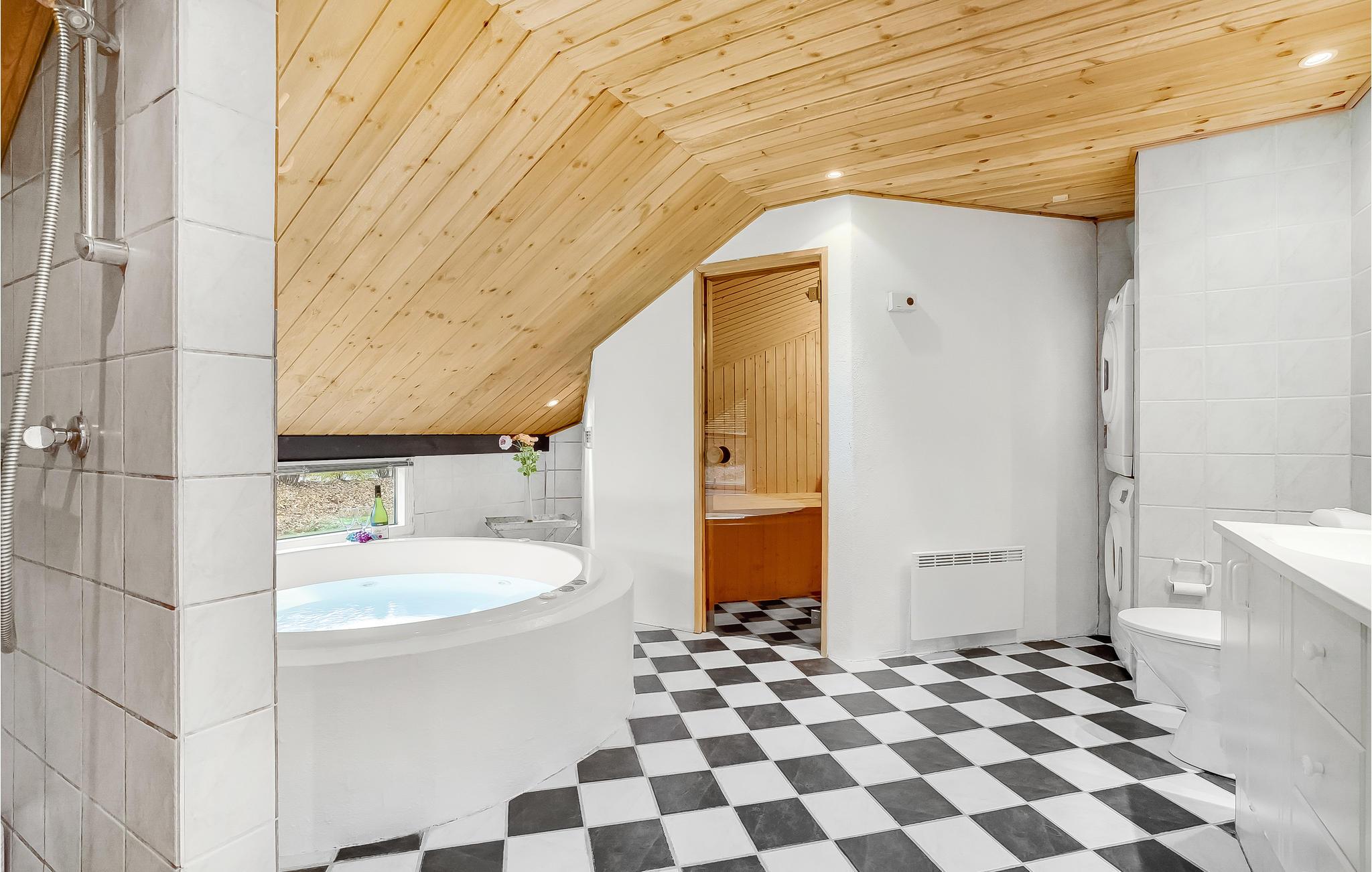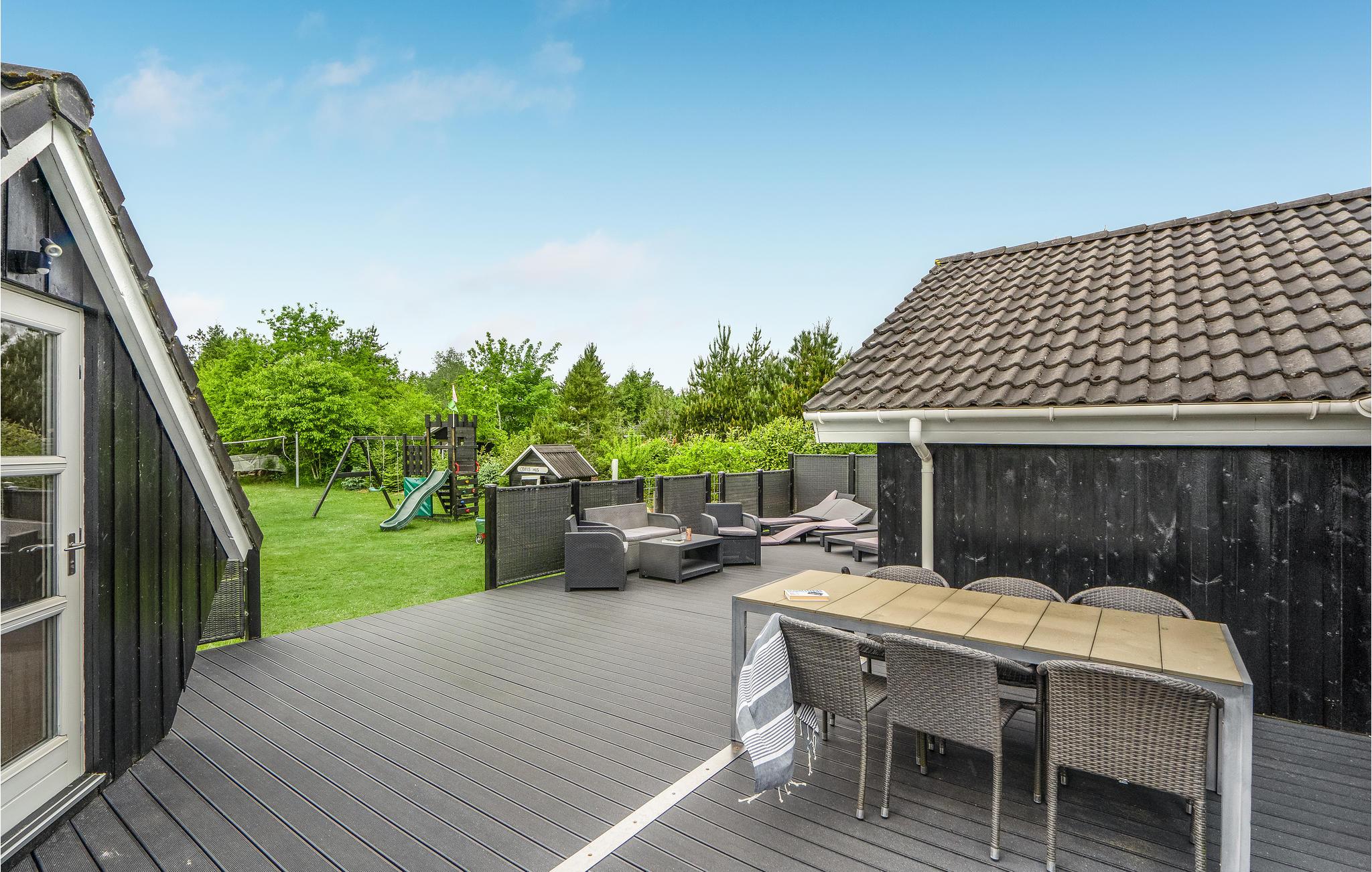 Richtig gemütliches und gepflegtes Ferienhaus mit einem persönlichen Stil. In der geräumigen Wohnküche sind alle wichtigen Haushaltsgeräte vorhanden und auch ein behaglicher Kaminofen. Im großen Badezimmer sind ein Whirlpool und ein Zugang zur Sauna. Es gibt mehrere Terrassen, sie sind z. T. windgeschützt und überdacht und mit bequemen Gartenmöbeln ausgestattet. Das große Aktivitätscenter liegt im Gehabstand vom Haus, es sind dort Ziegen zum Streicheln, ein Spielplatz, ein Spielland mit Airhockey, Tischtennis und, gegen Gebühr, Fußballkicker vorhanden. Sie können dort auch essen und einkaufen.