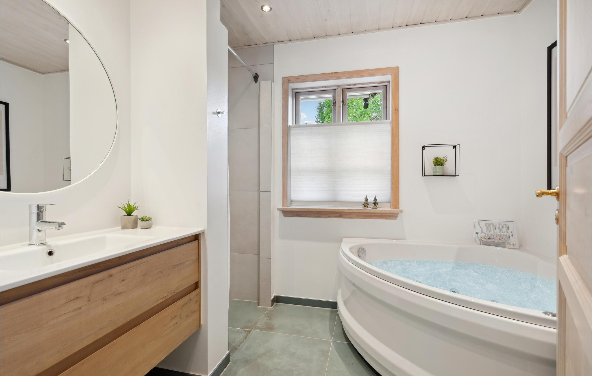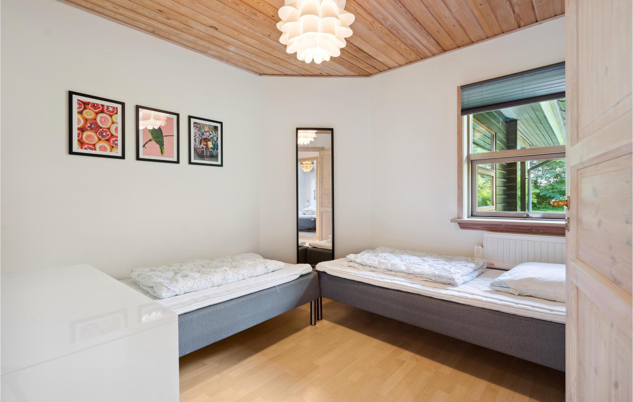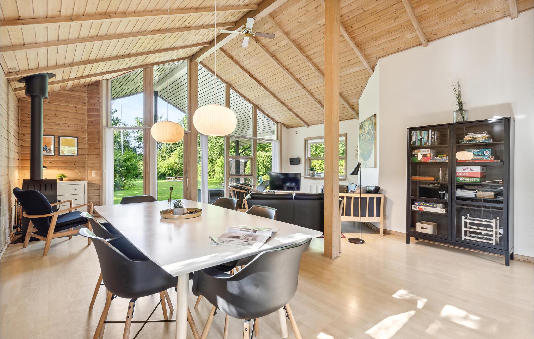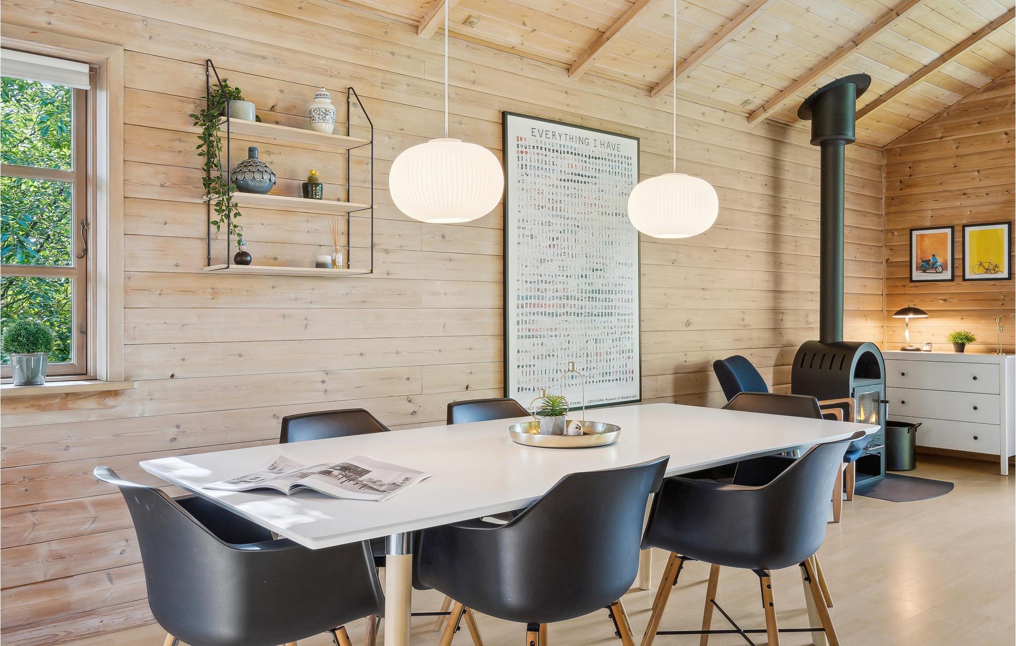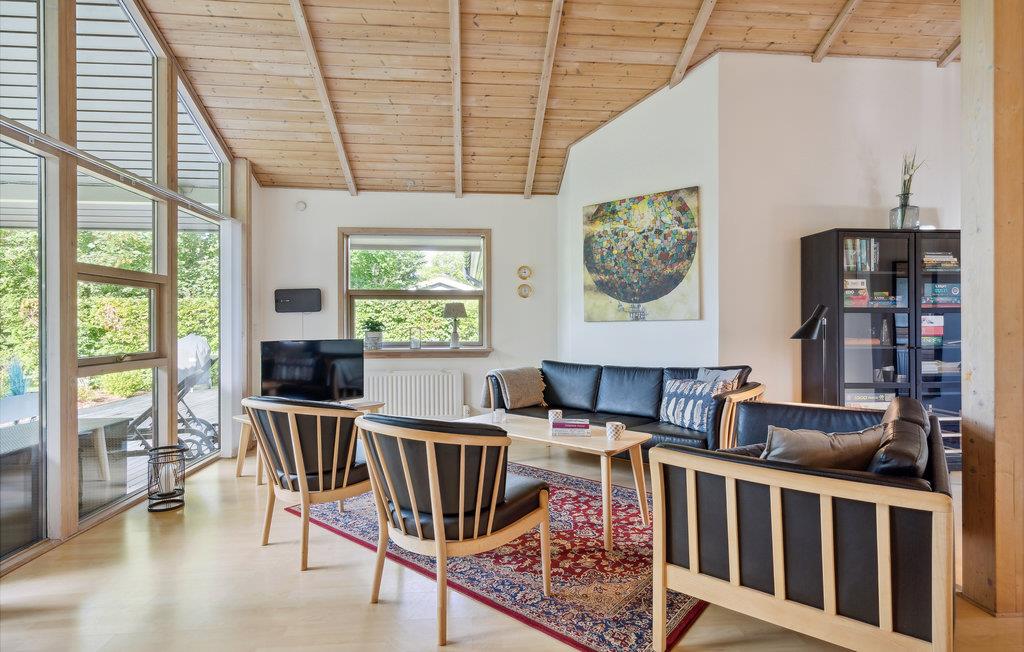 Sehr gemütliches und besonderes Balkenferienhaus auf einem größeren, geschlossenen und ungestörten Grundstück mit einem in den Boden eingelassenen Trampolin. Schöne, geräumige Wohnküche mit Ausgang zur teilweise überdachten Terrasse, wo Sie bis spätabends sitzen können, nachdem der Tau gefallen ist. Im großen Bad mit Fußbodenheizung könenn Sie sich im Whirlpool entspannen. Es gibt drei Schlafzimmer - zwei davon sind mit Doppelbetten, eins mit Einzelbetten ausgestattet. Es gibt eine Wärmepumpe und einen Kaminofen, die dazu beitragen, die Energiekosten gering zu halten. Das Haus liegt am Ende eines Kieswegs mit sehr wenig Verkehr. Kurzer Fußweg zum Aktivitäts- und Einkaufscenter im Ort.