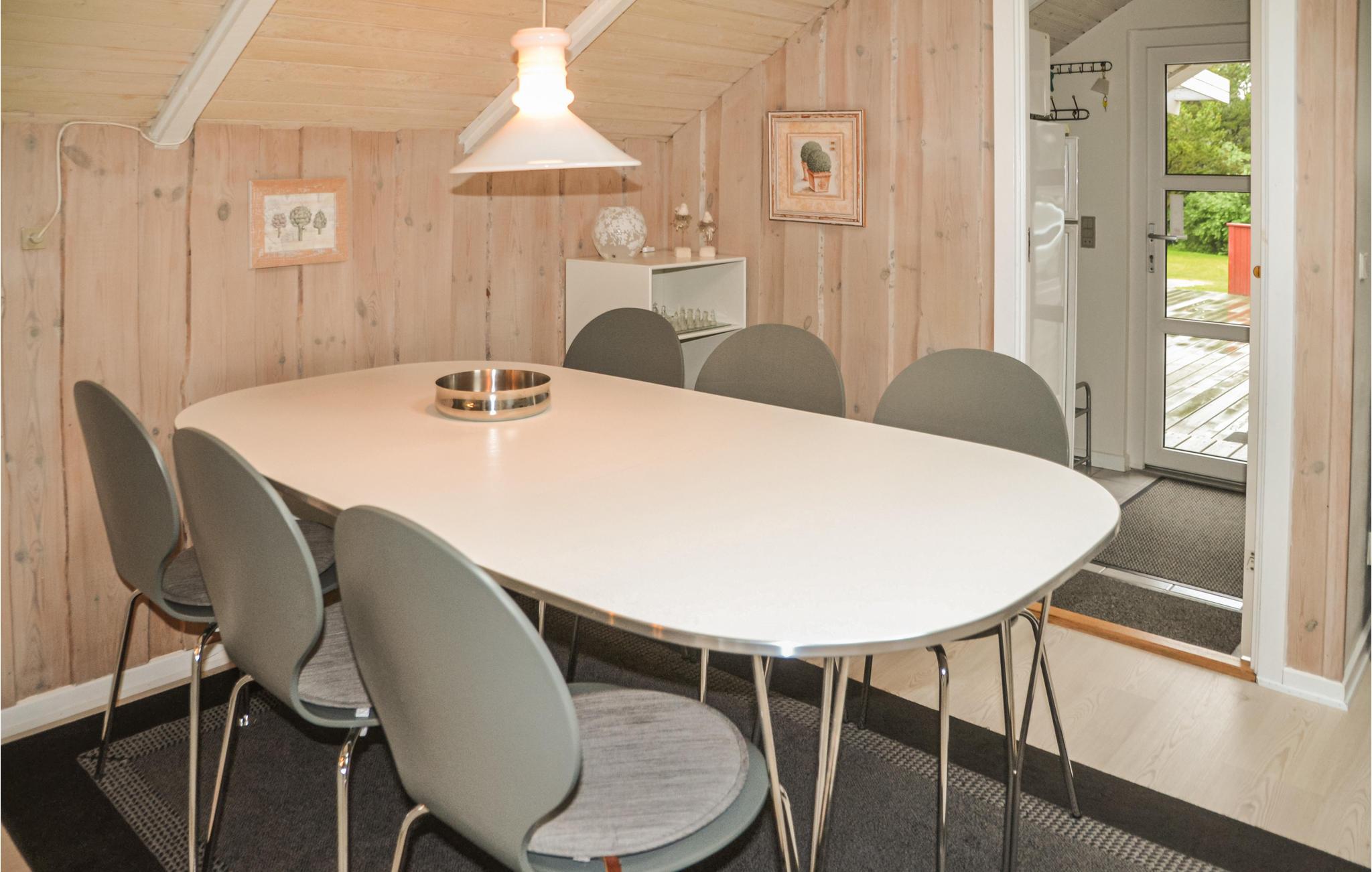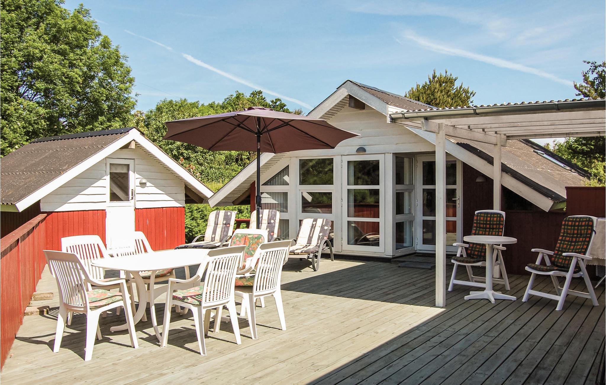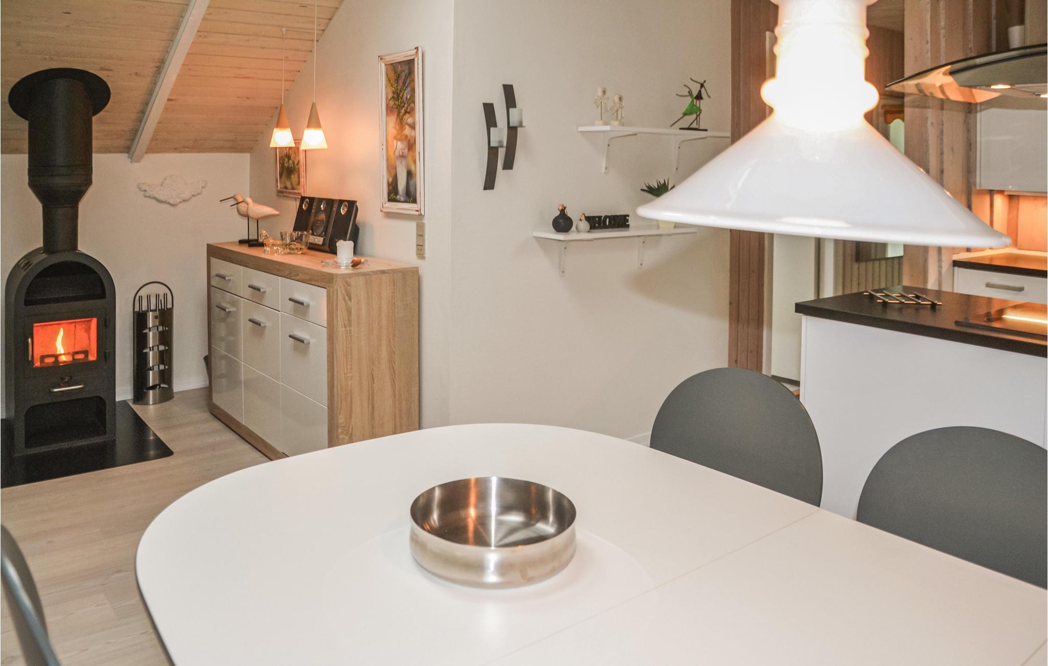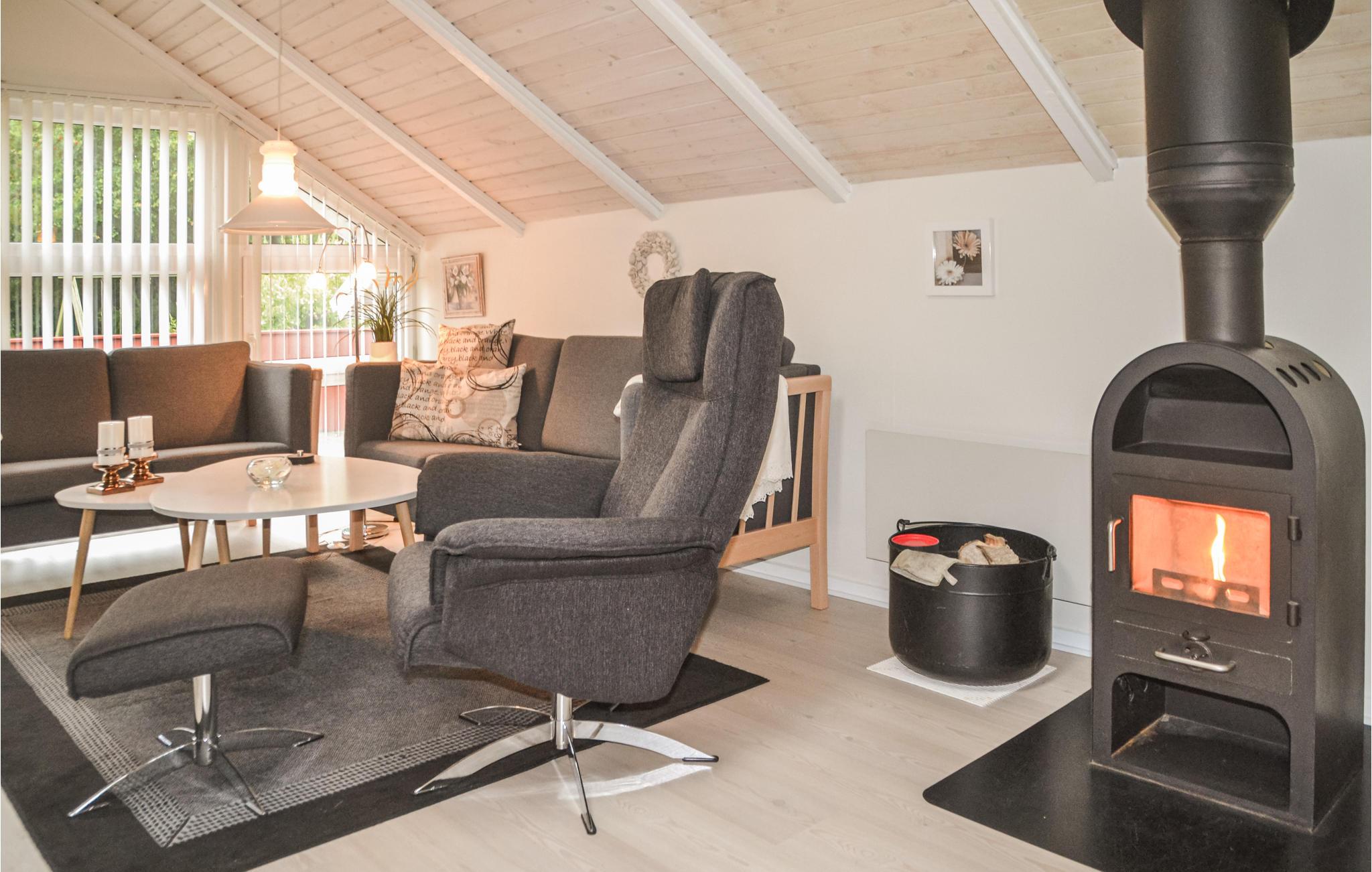 Das gemütlich eingerichtete Ferienhaus liegt fünf Minuten zu Fuß vom Aktivitätscenter der Anlage. Im Center sind Hüpfburg, Rutschen, Lebensmittelgeschäft, Restaurant und ein Minizoo zu finden. Das Haus ist gemütlich und gut eingerichtet und besitzt eine schöne Küche. Sie ist offen zum Wohnzimmer mit Kaminofen. Draußen gibt es mehrere Holzterrassen. In der Umgebung können Sie sich gut zu Fuß und auf Radwegen fortbewegen. Es gibt auch Golplfätze und Angelseen sowie einen Naturpfad von ca. 11 km Länge mit Bänken, auf denen Sie sich niederlassen und die schöne Umgebung genießen können.