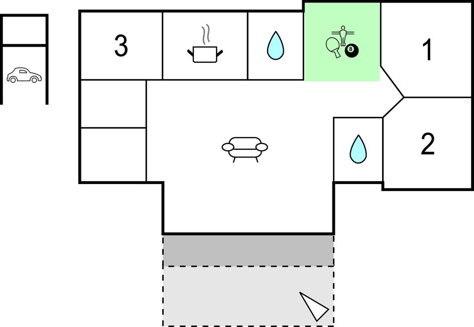 Auf einem Naturgrundstück liegt dieses Aktivitätsferienhaus mit Tischfußball. Die gemütliche Wohnküche wird sicher der Ort, an dem sich Ihre Familie zum Ausspannen oder Karten spielen versammelt. Angenehme Wohnküche mit Kaminofen und Klimaanlage. Zum Ferienhaus gehört auch eine schöne Terrasse für den nachmittäglichen Kaffeegenuss oder ein Sonnenbad. Im Garten gibt es ein Spielhaus, Schaukel, Sandkasten und Fußballtor und Sie können hier auch Petanque spielen. Nach einem schönen Ausflug ist es herrlich, zurück zum Haus zu kommen, das Auto im Carport zu parken und auf dem Grill das Abendessen zuzubereiten.